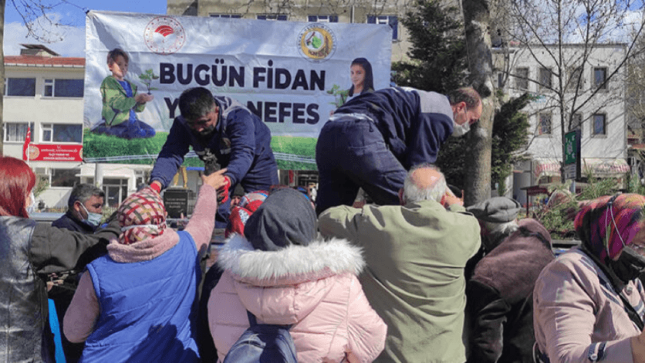 Vatandaşların ilgisi nedeniyle 3 bin fidan yarım saat içerisinde tükendi.