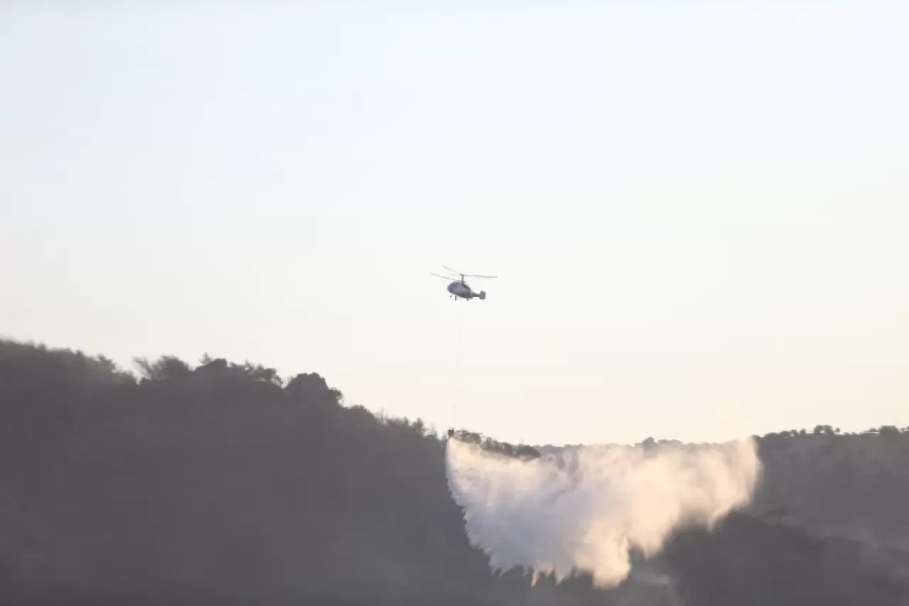 Günün ilk ışıklarıyla birlikte 2 helikopter yangını söndürme çalışmalarına havadan destek vermeye başladı.