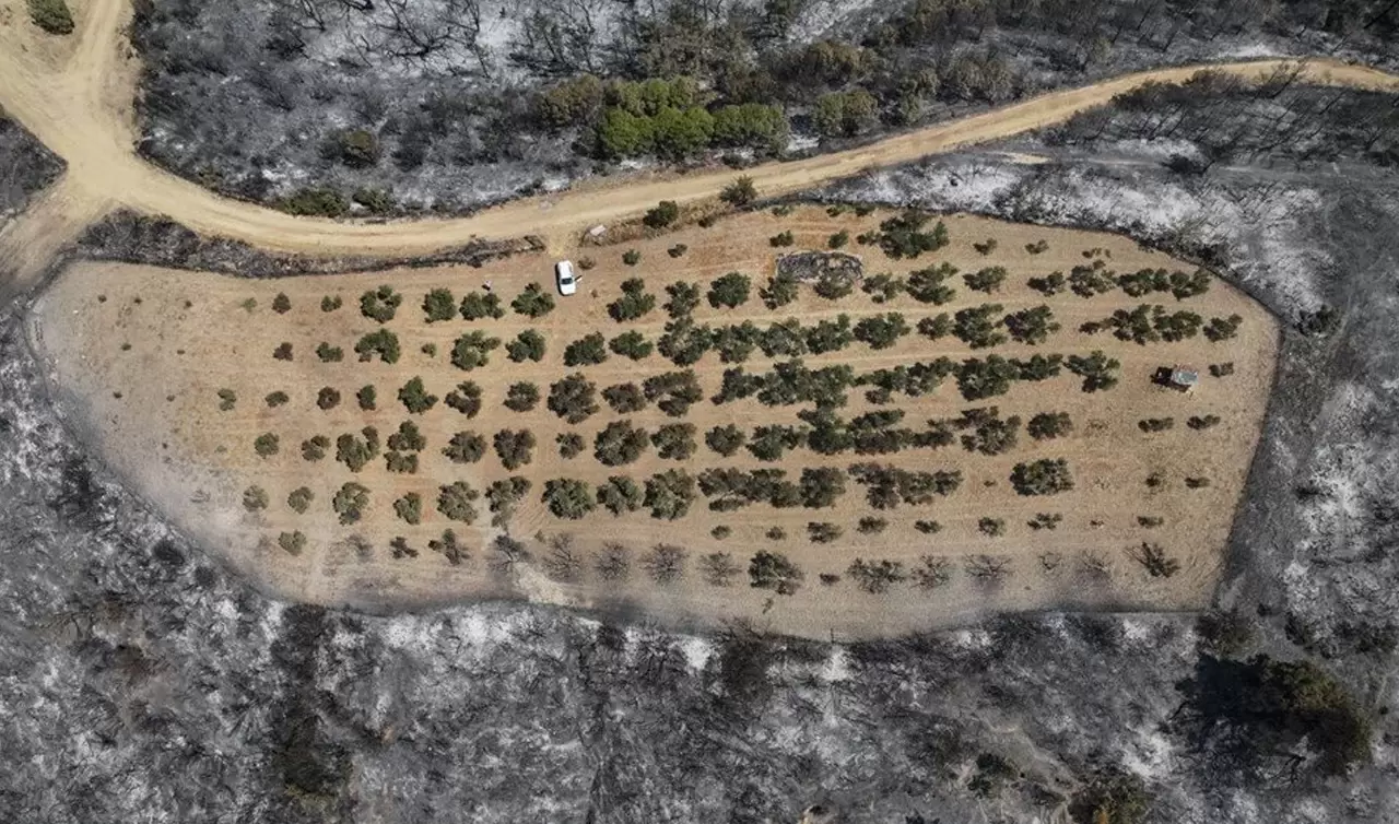 "Zeytinliğin etrafındaki her yer küle döndü. Zeytinliğim ağaçların altı temiz, alanın sürülmüş ve bakımlı olması nedeniyle zarar görmedi. Sadece yangının sıcaklığı nedeniyle birkaç ağaç zarar gördü. Ormana yakın olan ağaçların bazıları hafif zarar gördü. Biz önceden önlemimizi almıştık. Sürdük, bakımını yaptık. Etrafı temizdi. Çevresi temiz olmasaydı tamamen yanardı, kül olurdu."