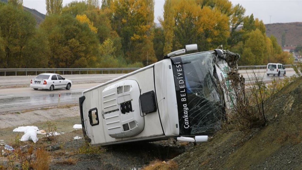 Ankara-Bala kara yolunda, Çankaya Belediyesine ait servis aracının devrilmesi sonucu ilk belirlemelere göre 30 kişi yaralandı.