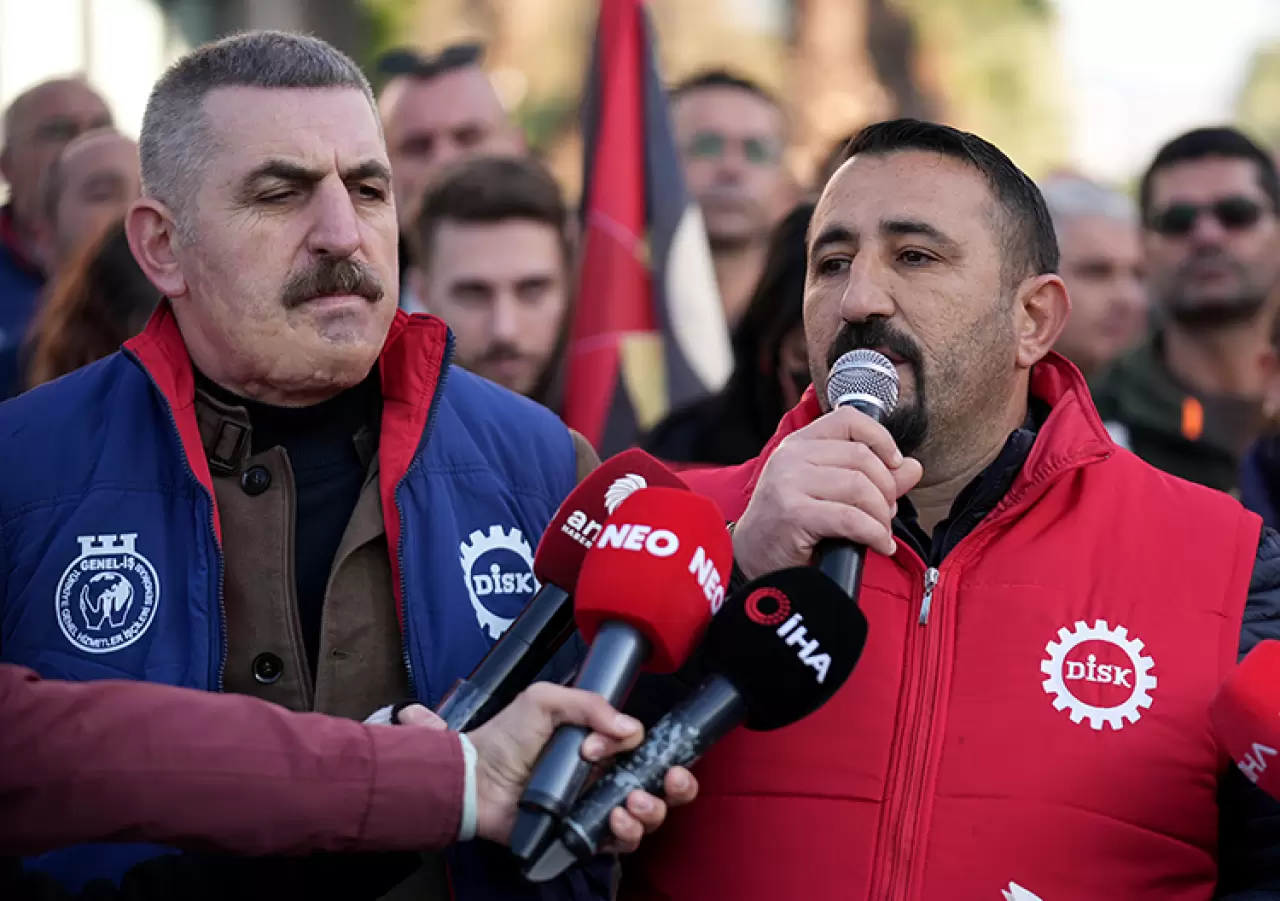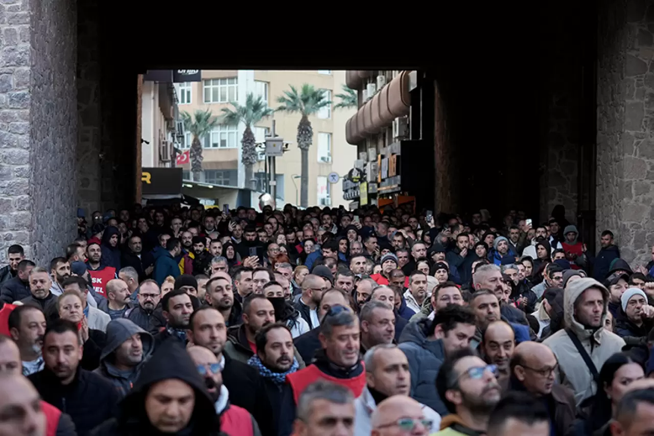 Pazartesi günü başlatılan eylemin dördüncü gününde yarım gün iş bırakan bir grup Genel-İş Sendikası üyesi işçiler ve sendika temsilcileri, Konak Atatürk Meydanı yakınlarında toplandı.
