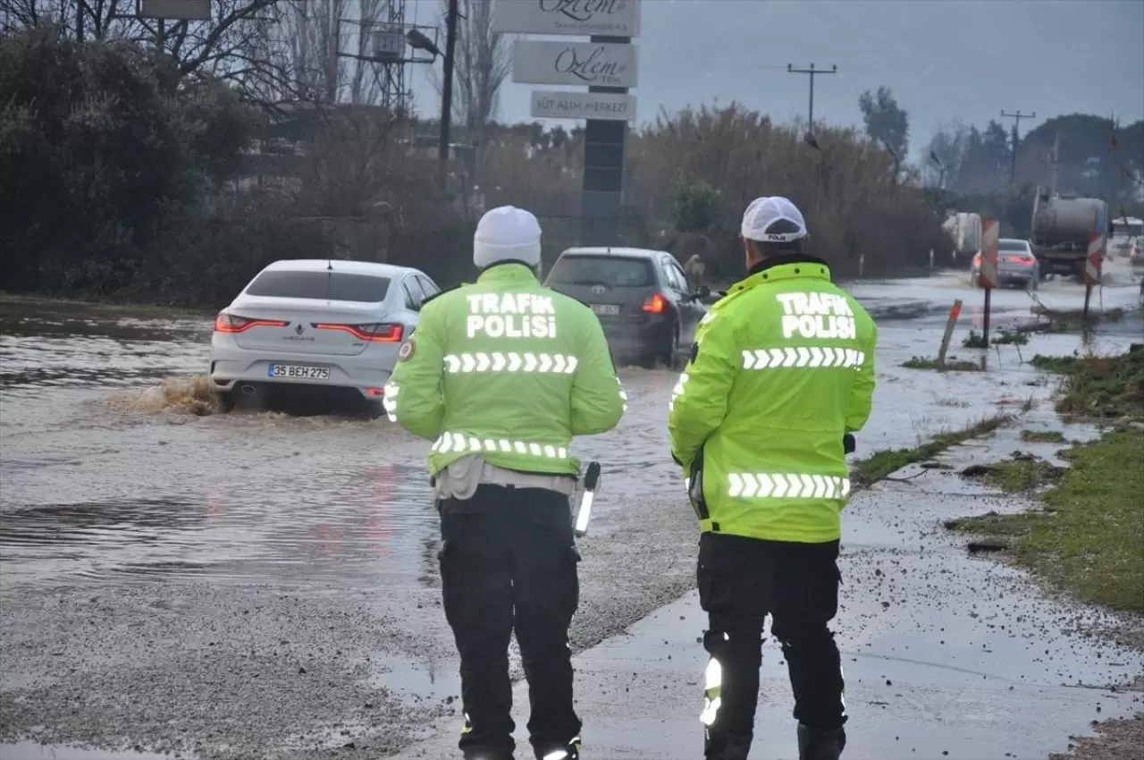 Ödemiş-İzmir kara yolunun İlkkurşun Mahallesi yakınlarında su birikintileri oluştu.