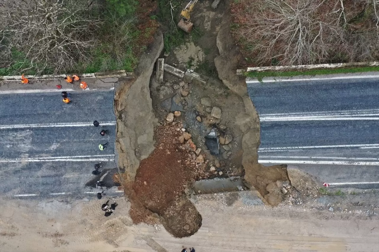Çökme nedeniyle yol çift taraflı ulaşıma kapatıldı.