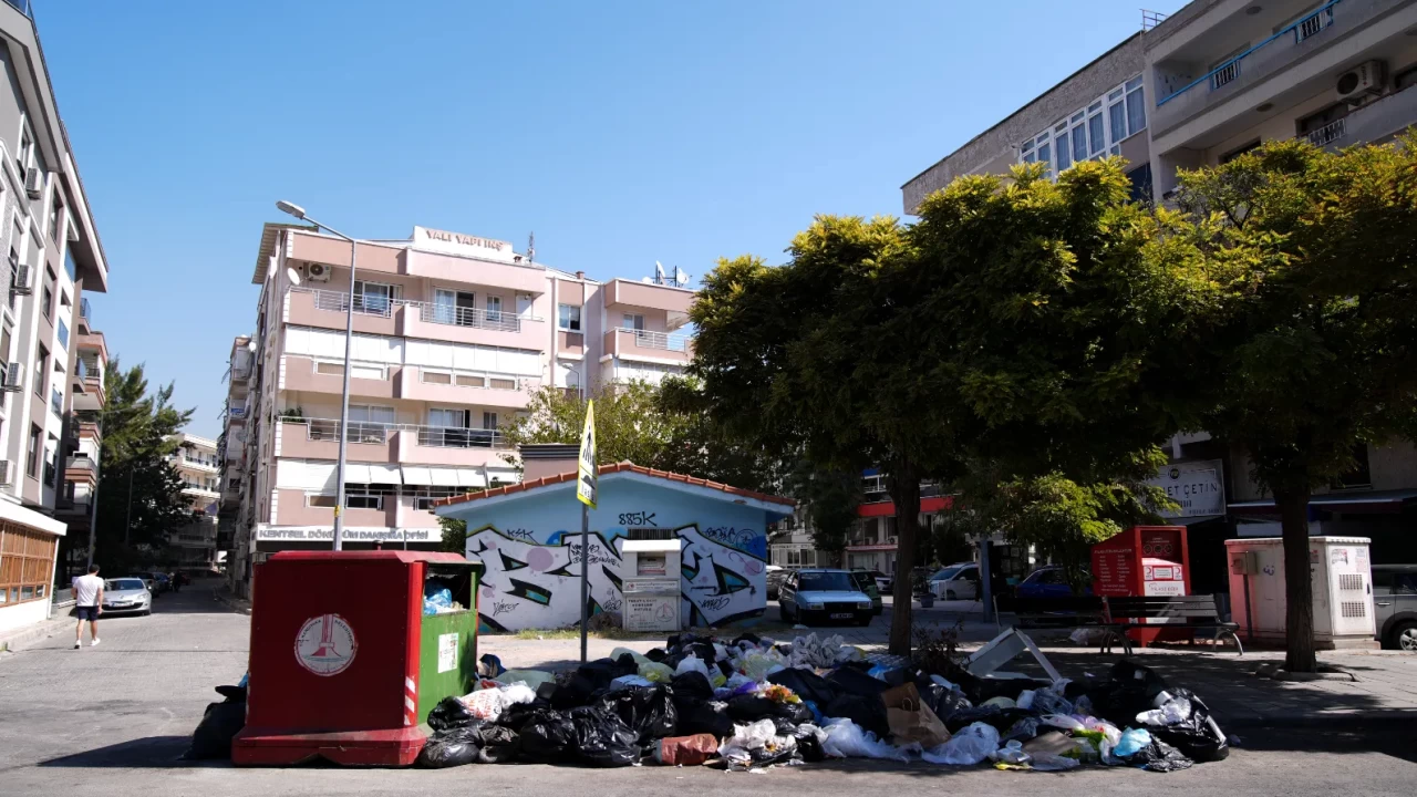 İzmir'in Buca, Karşıyaka ve Çiğli ilçelerinde çöplerin toplanmaması sorunu artarak devam ediyor. Buca ilçesinde toplanmayan çöplerde haşere çoğalmasını engellemek isteyen bazı esnaf, mazot dökerek tedbir almaya çalıştı. Ayrıca çöplerin yola taşmaması için atıkların biriktiği alanın etrafına şerit çekildi. Oto boya ve kaporta esnafı Veysi Levent, 2 aydır çöp sorunu yaşadıklarını belirterek, "Kendi çabalarımızla ilaçlamaya çalışıyoruz. Mazot alıyoruz ve ilaçlamaya çalışıyoruz. Mazotu sinekleri kaçırmak için kullanıyoruz. Sabah dükkanımız açıyoruz, çöple karşılaşıyoruz. Akşama kadar sineklerle boğuşuyoruz. Buraların toplanması ve çöplerin temizlenmesini istiyoruz." dedi.