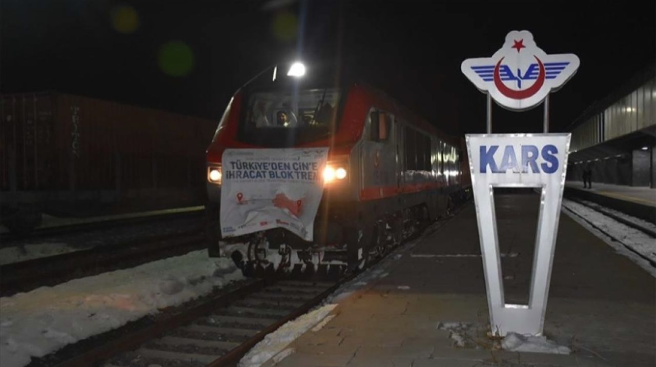 Ankara'dan dün törenle uğurlanan ve Çin'e gidecek bor yüklü 45232 nolu tren, Ankara, Kayseri, Sivas ve Erzurum'un yanı sıra Sarıkamış ilçesi güzergahını kullanarak Kars Tren Garı'na ulaştı.