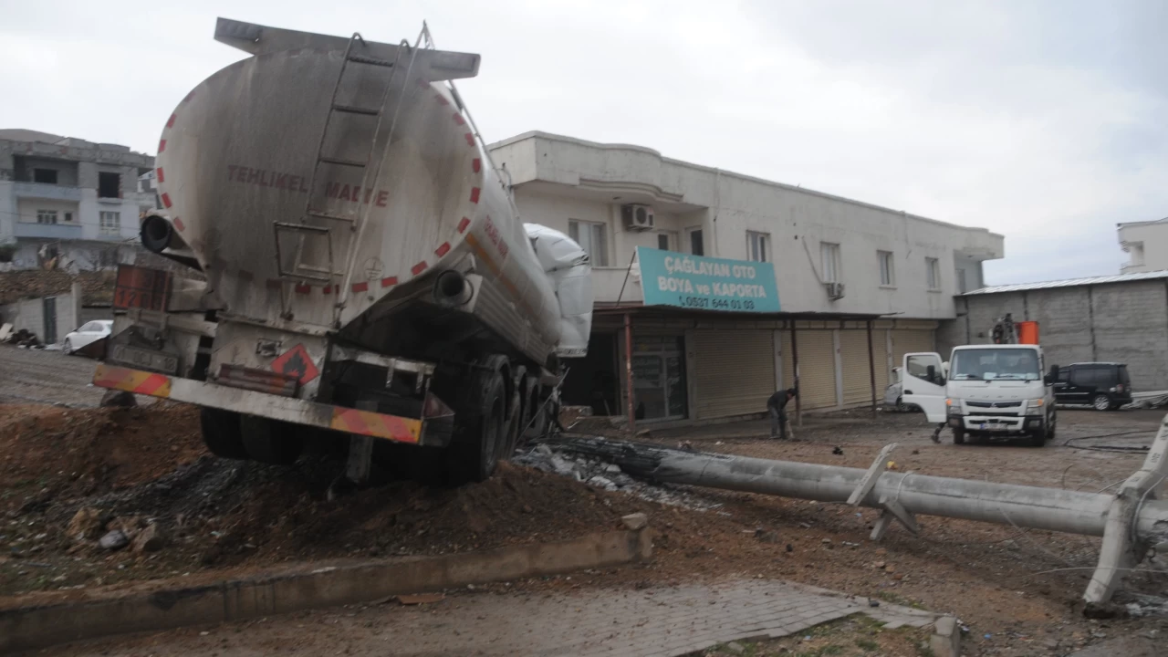 Edinilen bilgilere göre, Cumhuriyet Mahallesi'nde Kenan Ergin yönetimindeki 01 DJC 18 plakalı boş akaryakıt tankeri, sürücüsünün direksiyon hakimiyetini kaybetmesi sonucu beton elektrik direğine çarparak durabildi.