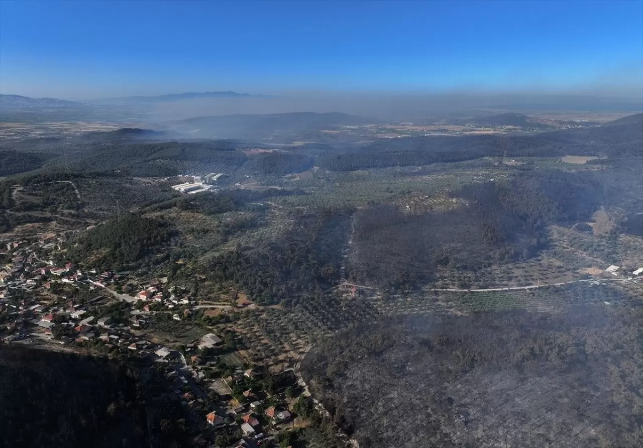 İhbar üzerine bölgeye İzmir Orman Bölge Müdürlüğüne bağlı 6 uçak, 5 helikopter, 25 arazöz, 9 su ikmal aracı ve 5 dozer sevk edildi.
