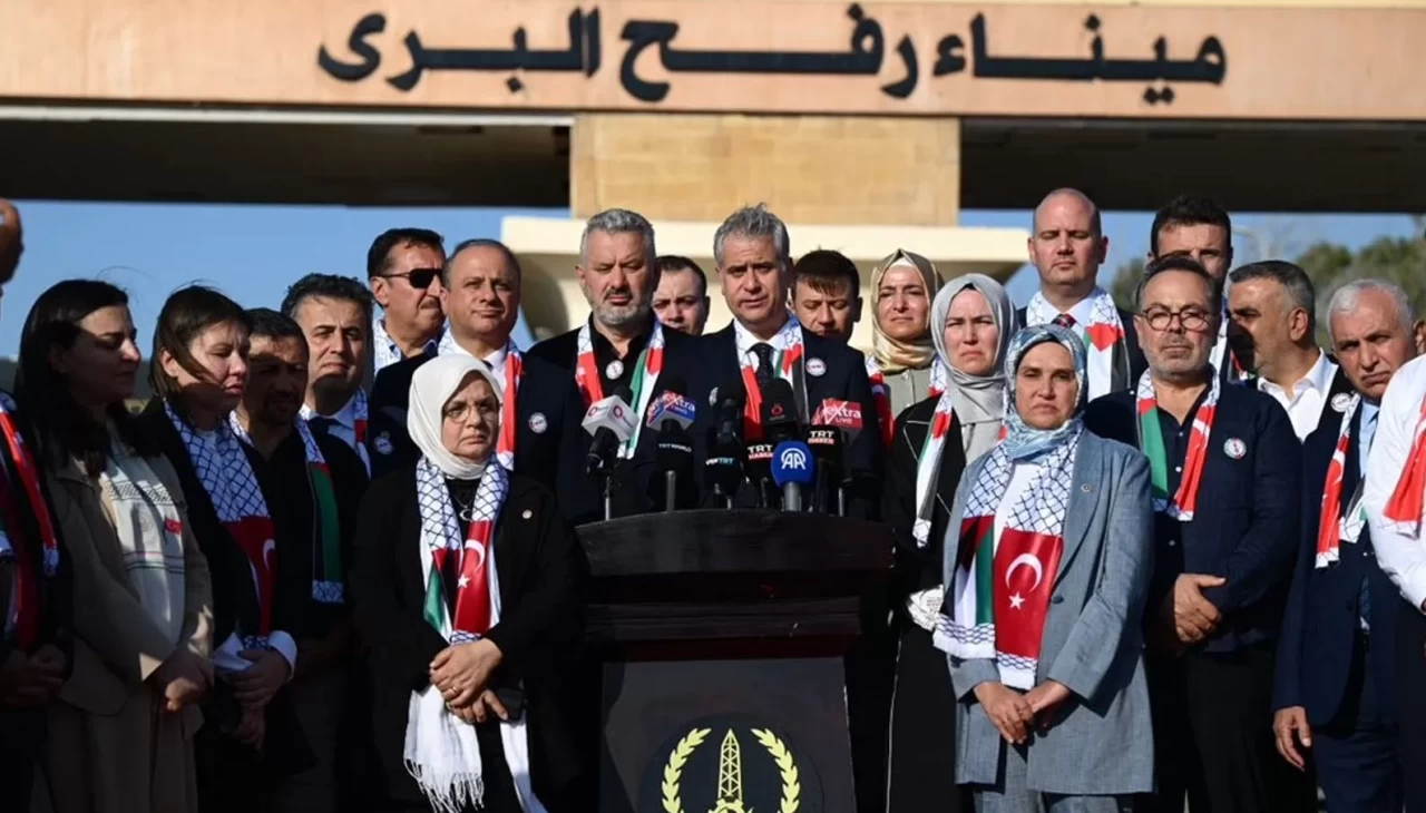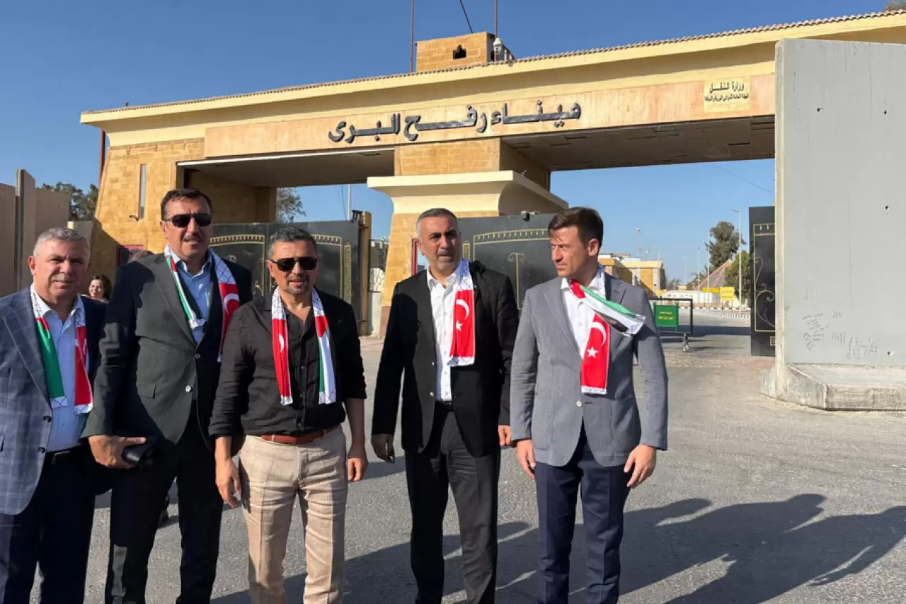 AK Parti İnsan Haklarından Sorumlu Genel Başkan Yardımcısı Hasan Basri Yalçın başkanlığında, AK Parti, MHP ve BBP temsilcileri, İsrail'in Gazze'de uyguladığı soykırıma ve insani krize dikkati çekmek amacıyla Refah Sınır Kapısı'nı ziyaret etti.