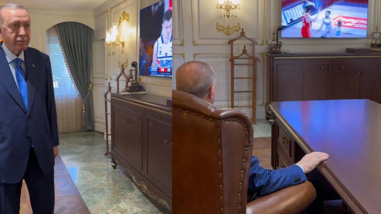 Altun, sosyal medya hesabında, Erdoğan'ın, partisinin mitingi sonrası ziyaret ettiği Adana Valiliğinde, 2025 Avrupa Basketbol Şampiyonası Elemeleri kapsamında Türkiye'nin İzlanda'yı 76-75 yendiği maçı izlediği görüntülere yer verdi.