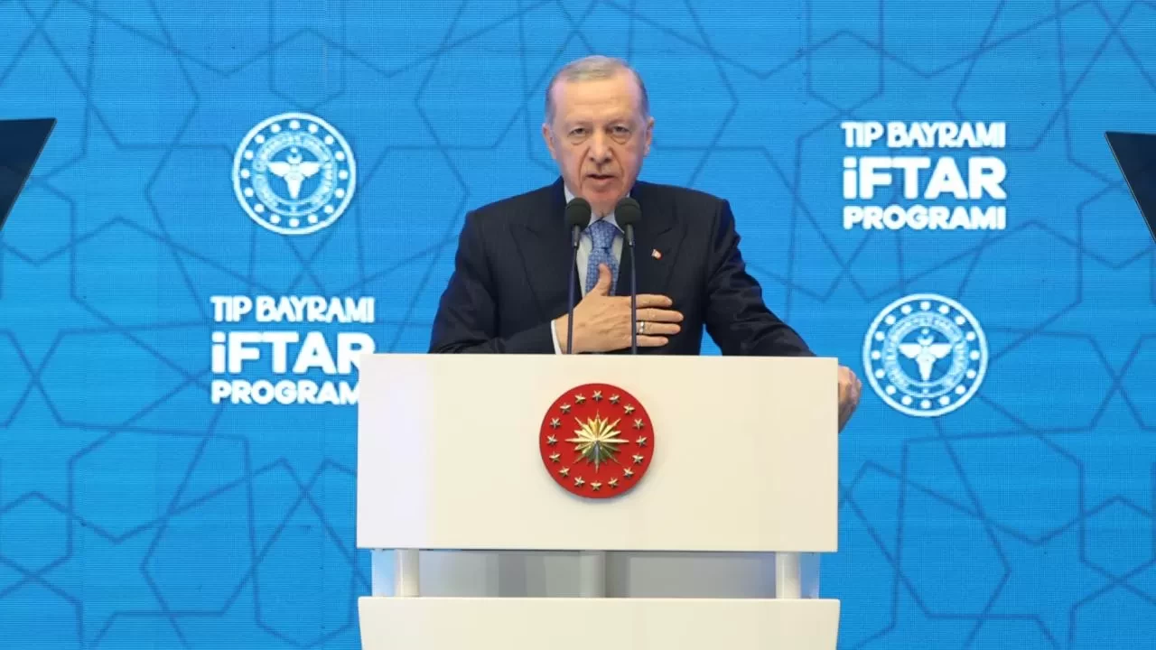14 Mart Tıp Bayramı dolayısıyla Başakşehir Çam ve Sakura Şehir Hastanesi'nde sağlık çalışanlarıyla iftar programında buluşan Erdoğan, sağlık çalışanlarının zor günlerde gösterdikleri fedakarlıkların millet tarafından her zaman şükranla yad edileceğini söyledi.