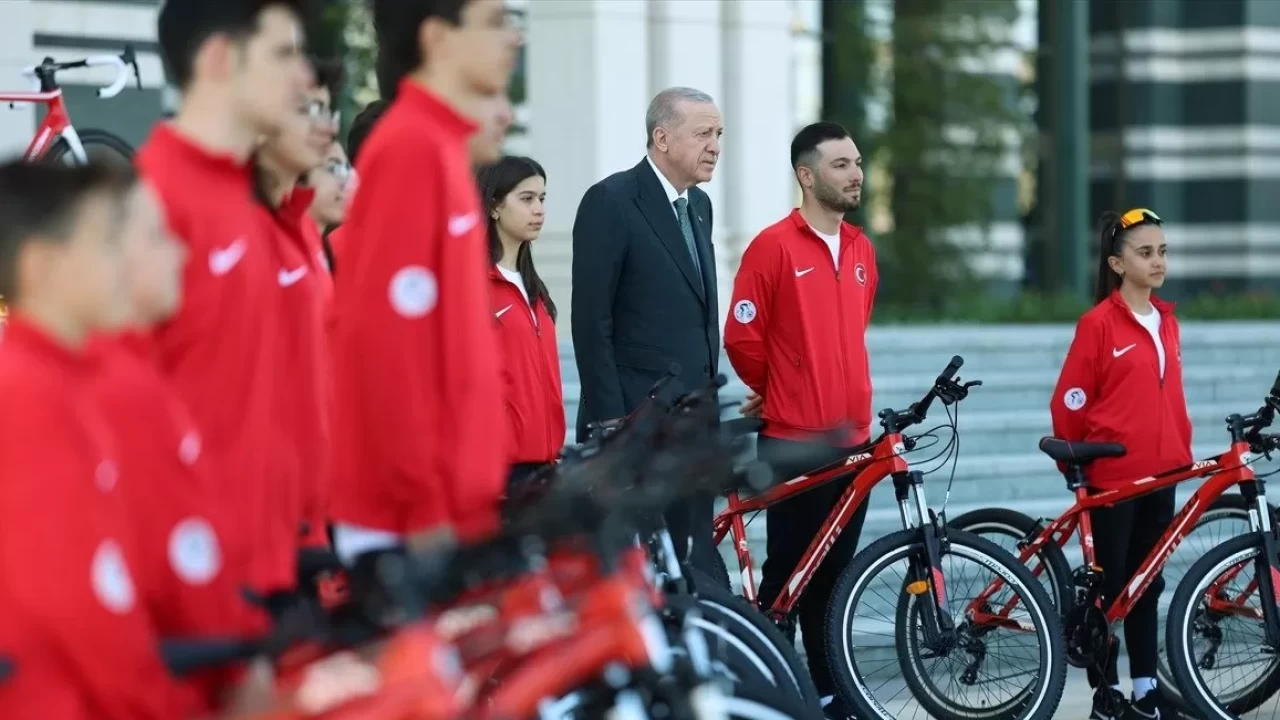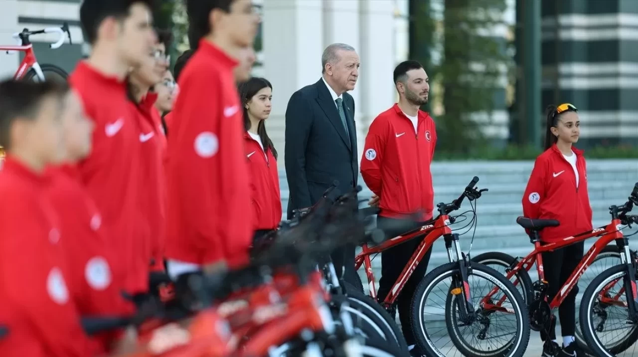 Cumhurbaşkanı Erdoğan'a, üzerinde adının yazılı olduğu bisiklet takdim edildi.