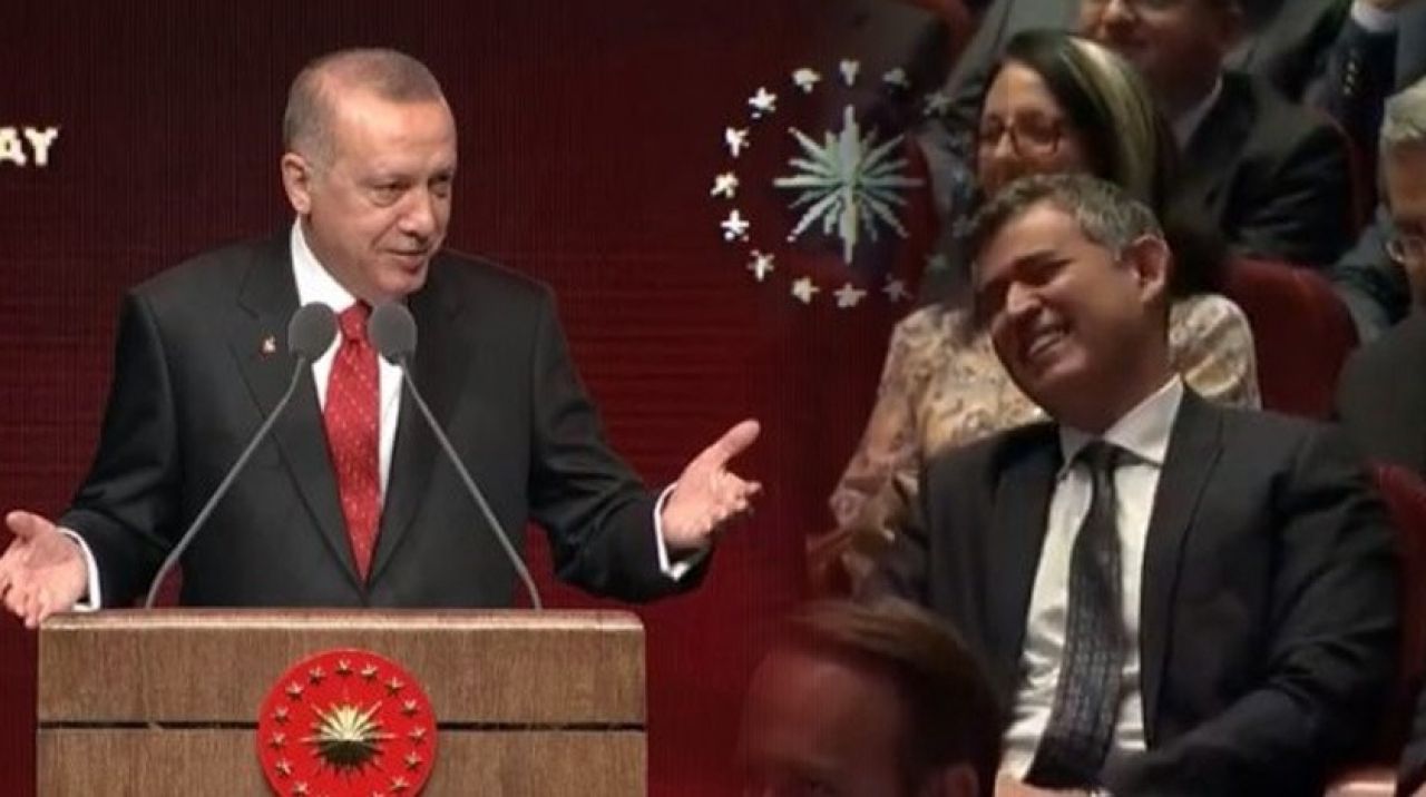 Salonda bulunan, başta Metin Feyzioğlu olmak üzere, bütün hukukçular bu sözleri büyük bir sevinçle alkışladı. Feyzioğlu ile göz göze gelen Erdoğan da gülümsedi.