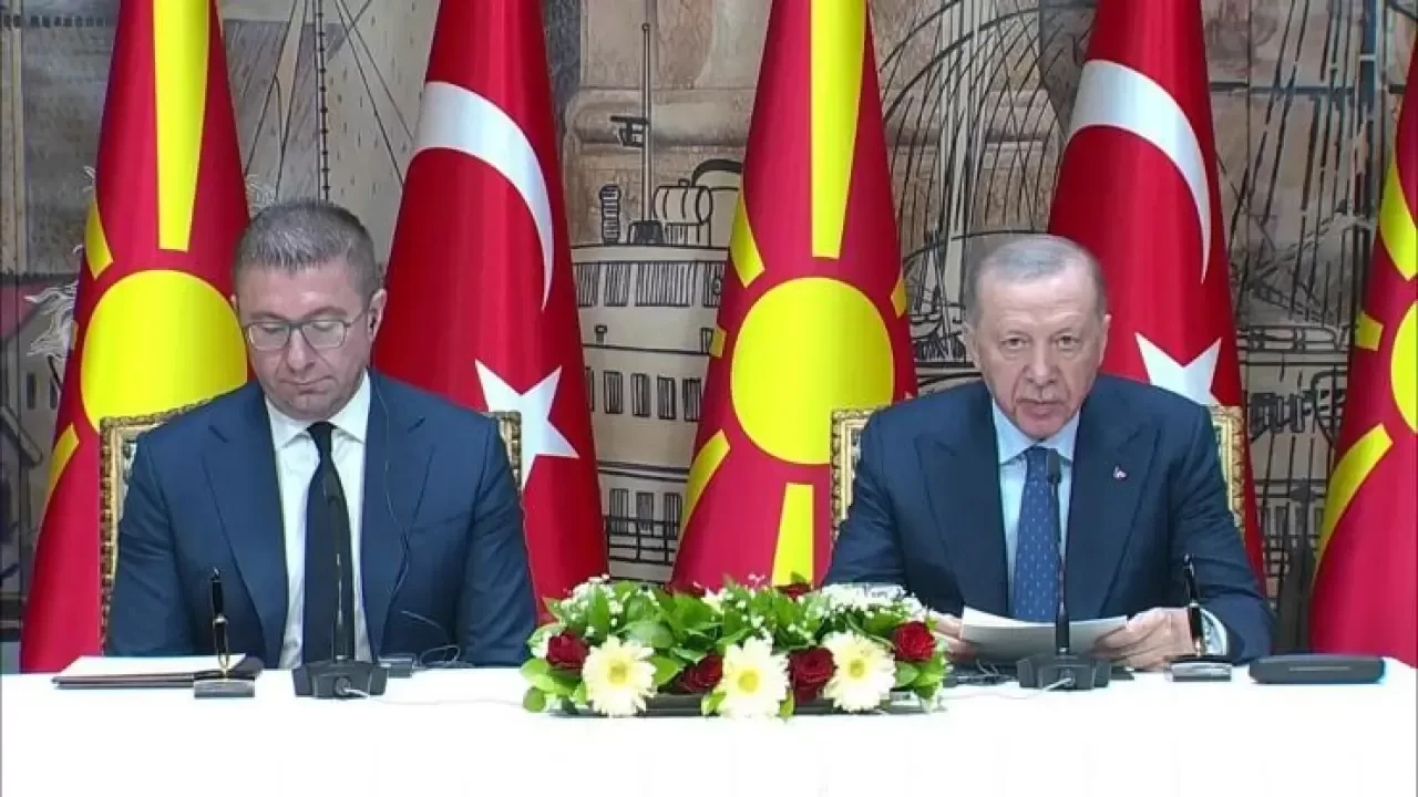 Cumhurbaşkanı Erdoğan, Türkiye ve Kuzey Makedonya'nın FETÖ ile ortak mücadelede kararlı olduklarını belirtti. Ayrıca, Ukrayna ve Gazze başta olmak üzere küresel meselelerde görüş alışverişinde bulunduklarını söyledi. Filistin için iki devletli çözümde ortak iradelerinin pekiştiğini ifade eden Erdoğan, Türkiye’nin bu konuda her zaman Kuzey Makedonya’nın yanında olduğunu vurguladı.