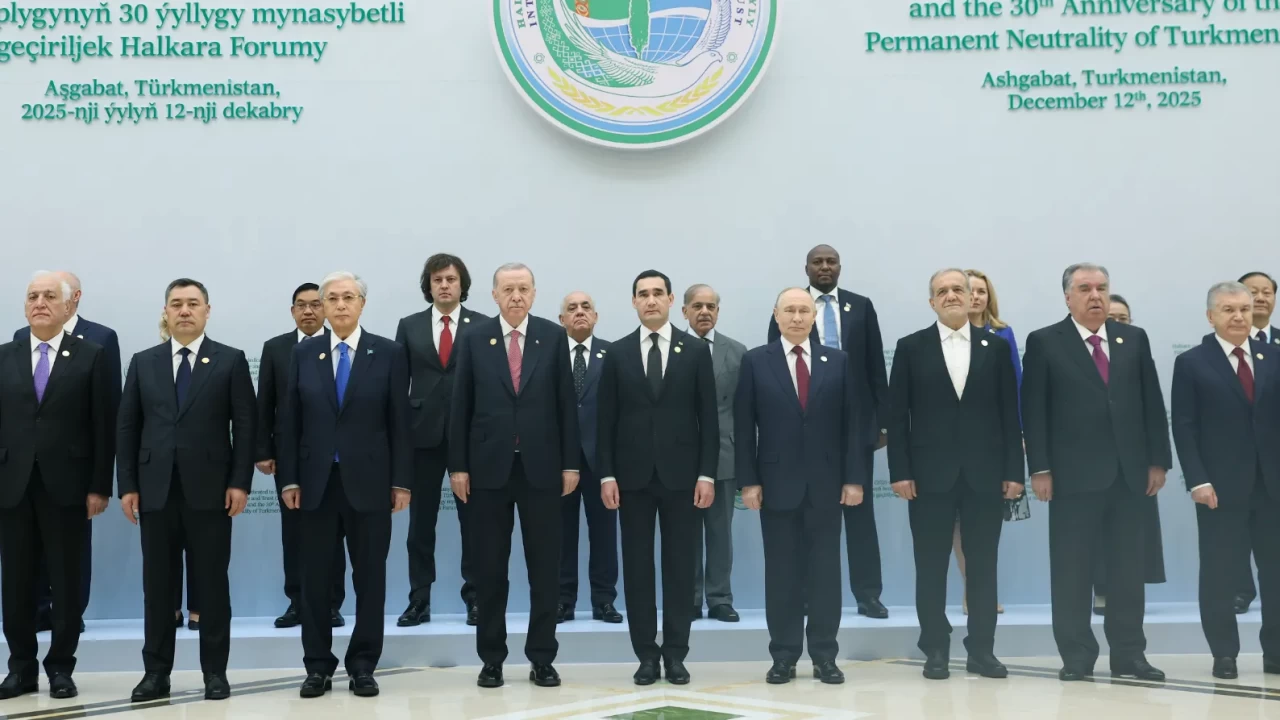 Cumhurbaşkanı Recep Tayyip Erdoğan, Türkmenistan'ın başkenti Aşkabat'ta düzenlenen "Uluslararası Barış ve Güven Forumu" öncesinde, Forumun gerçekleştirildiği Türkmenistan Maslahatlar Merkezi'nde resmi karşılama töreninin ardından aile fotoğrafı çekiminde yer aldı.