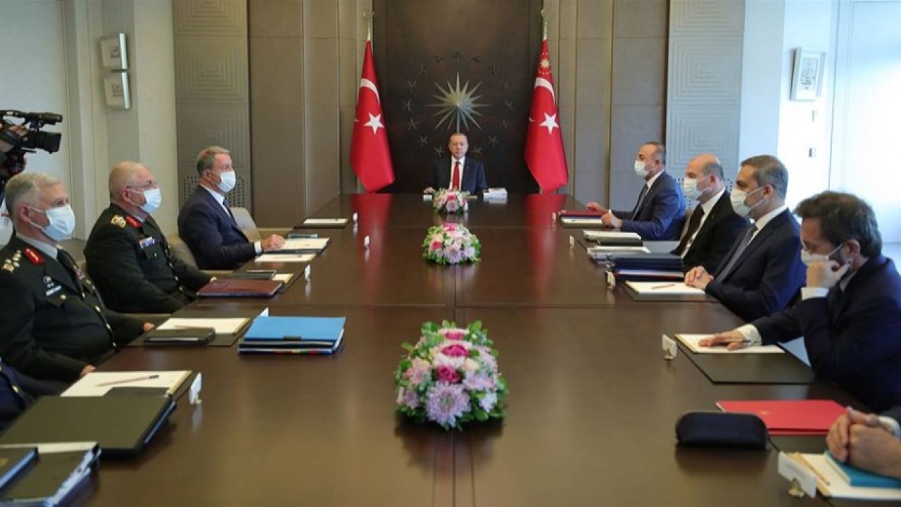 Toplantıya, Cumhurbaşkanı Yardımcısı Fuat Oktay, Dışişleri Bakanı Mevlüt Çavuşoğlu, Milli Savunma Bakanı Hulusi Akar, İçişleri Bakanı Süleyman Soylu, Genelkurmay Başkanı Orgeneral Yaşar Güler, Milli İstihbarat Teşkilatı Başkanı Hakan Fidan, İletişim Başkanı Fahrettin Altun, Kara Kuvvetleri Komutanı Orgeneral Ümit Dündar, Hava Kuvvetleri Komutanı Orgeneral Hasan Küçükakyüz, Deniz Kuvvetleri Komutanı Oramiral Adnan Özbal ve Cumhurbaşkanlığı Sözcüsü İbrahim Kalın katıldı.