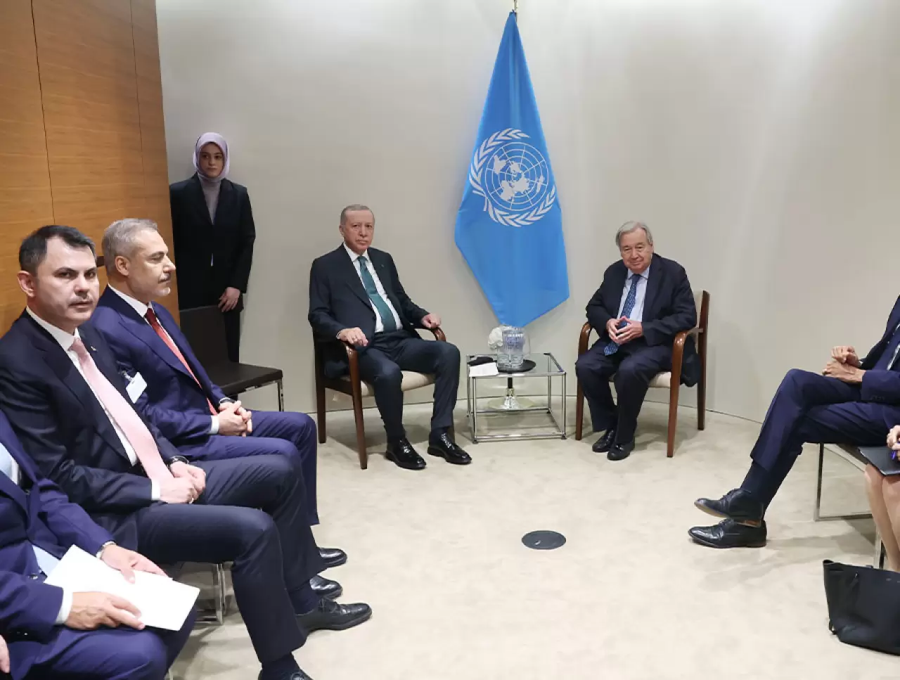Cumhurbaşkanı Recep Tayyip Erdoğan, Birleşmiş Milletler (BM) 80. Genel Kurulu'na hitabının ardından BM Genel Sekreteri Antonio Guterres ile bir araya geldi.