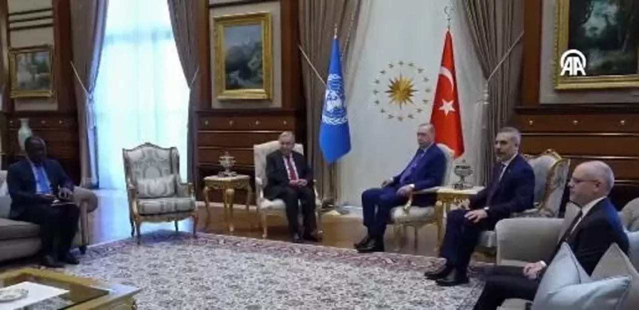 Külliye’de gerçekleşen görüşmede Cumhurbaşkanı Erdoğan ve Guterres bir süre baş başa görüştü.