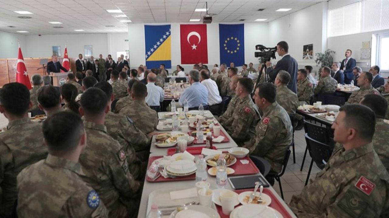 Türkiye Cumhurbaşkanı Recep Tayyip Erdoğan, Avrupa Birliği (AB) Barış Gücü bünyesinde, Bosna Hersek Türk Temsil Heyet Başkanlığı Milli Destek Birlik Komutanlığında görev yapan Türk askerleriyle bir araya geldi.