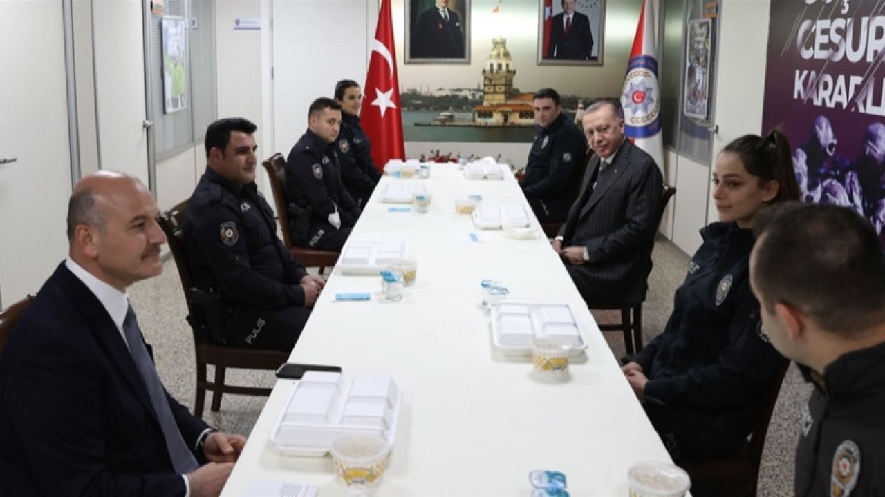 İçişleri Bakanı Süleyman Soylu ve İstanbul Emniyet Müdürü Zafer Aktaş'ın da katıldığı iftarda Erdoğan, polislerle orucunu açıp onlarla tek tek sohbet etti.