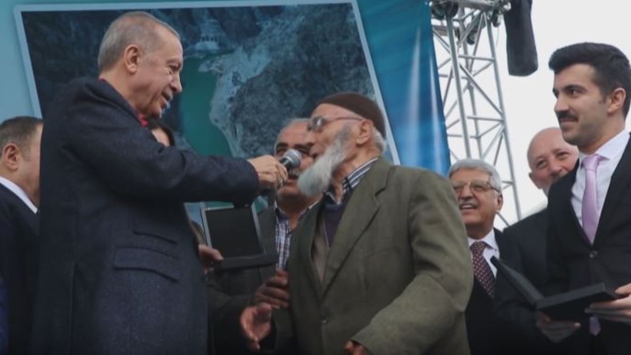Cumhurbaşkanı Erdoğan Yusufeli ilçesi yeni yerleşim yeri anahtar teslim törenine katıldı. Anahtarını alan 92 yaşındaki Binali Polat'ın isteği doğal gaz oldu.