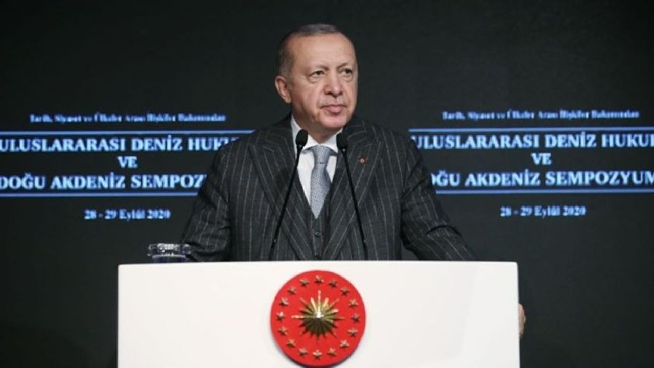 Erdoğan, Cumhurbaşkanlığı Dolmabahçe Ofisi'nde, TBMM Başkanlığının katkılarıyla İstanbul Üniversitesi ve Marmara Üniversitesi tarafından düzenlenen Tarih, Siyaset ve Ülkelerarası İlişkiler Bakımından "Uluslararası Deniz Hukuku ve Doğu Akdeniz Sempozyumu"nda konuştu.