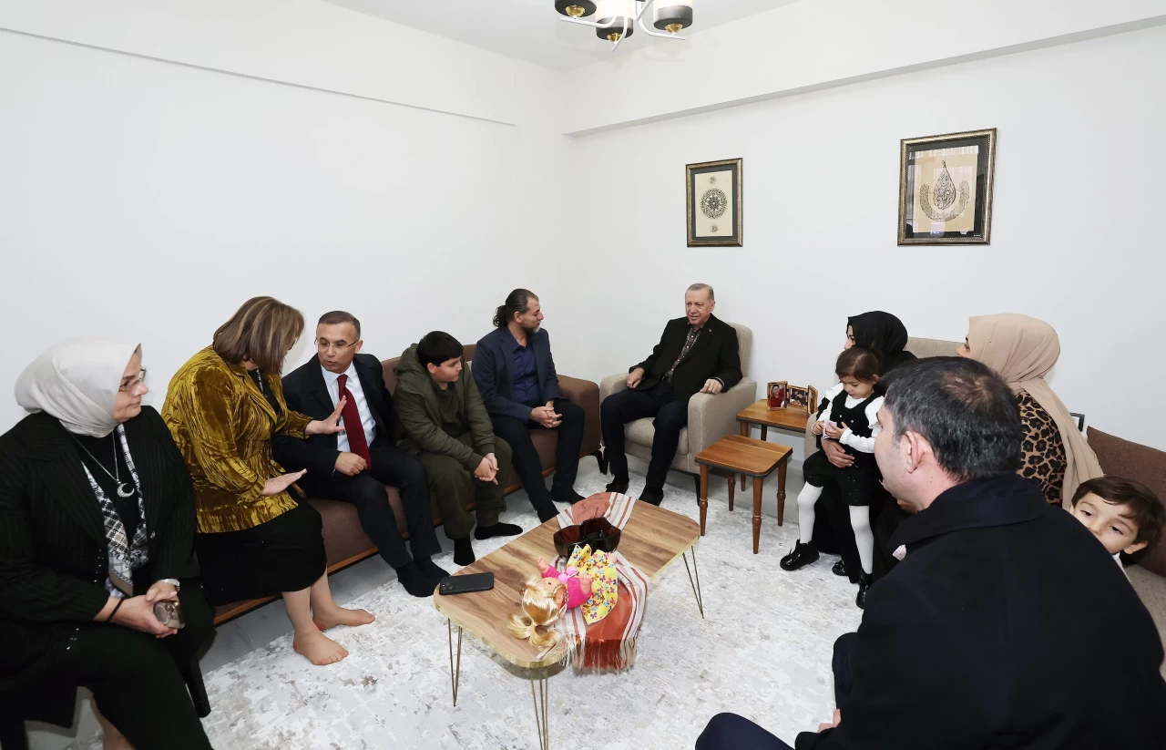 Gaziantep'te 5 bin 113 konut anahtar ve tapu teslim törenine katılan Cumhurbaşkanı Recep Tayyip Erdoğan, tören sonrası depremzede ailenin evine misafir oldu.