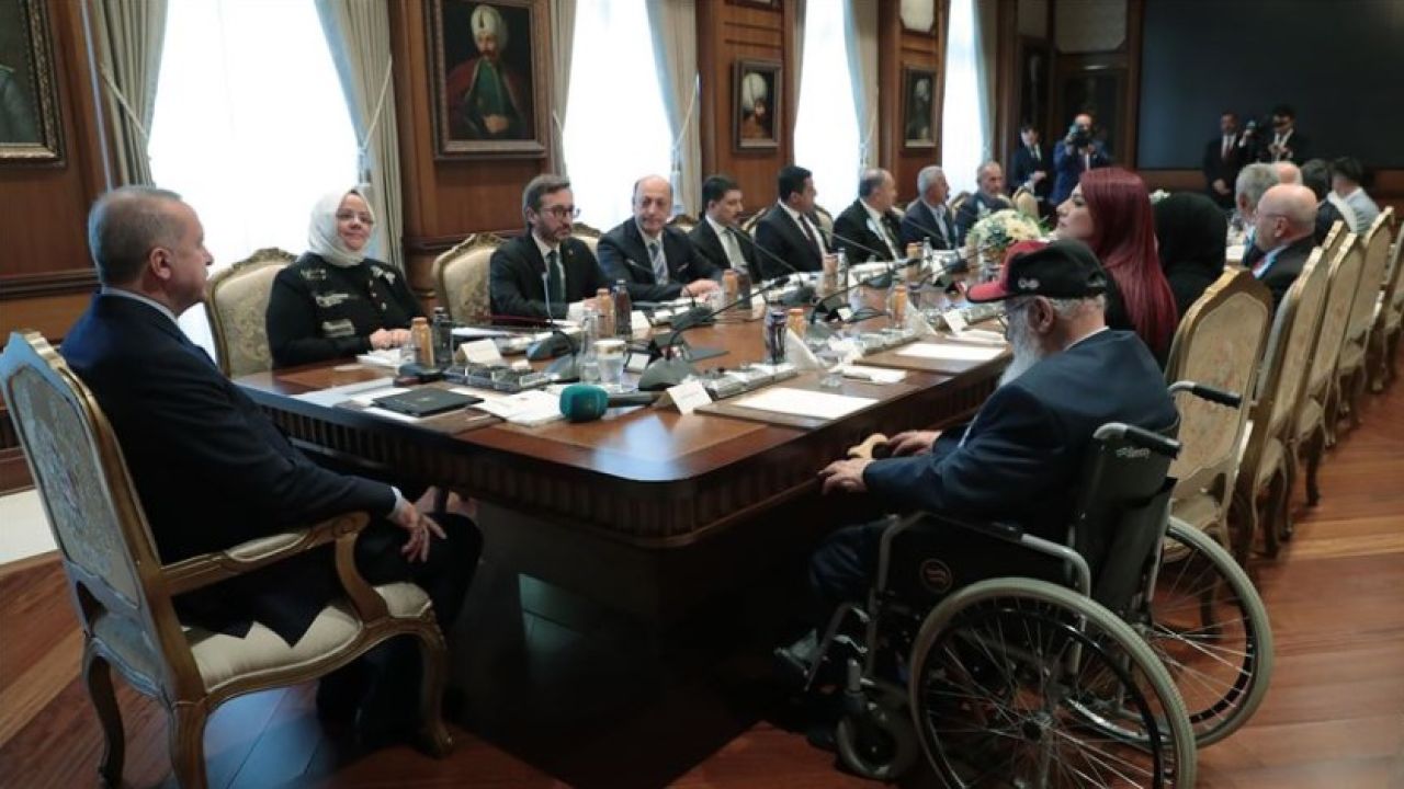 Türkiye Cumhurbaşkanı Recep Tayyip Erdoğan, 19 Eylül Gaziler Günü dolayısıyla Aile, Çalışma ve Sosyal Hizmetler Bakanı Zehra Zümrüt Selçuk ve beraberindeki gazileri kabul etti.