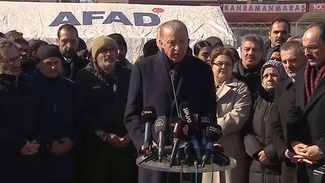 Cumhurbaşkanı Recep Tayyip Erdoğan, depremin merkezi Kahramanmaraş'ta çadır kenti ziyaret etti. Burada açıklama yapan Erdoğan, ilk gün bazı sıkıntılar yaşandığını belirtti, "İkinci gün ve bugün duruma hakimiyet tesis edildi." dedi. Erdoğan depremden zarar gören ailelere 10 bin lira maddi yardım yapılacağını da söyledi.