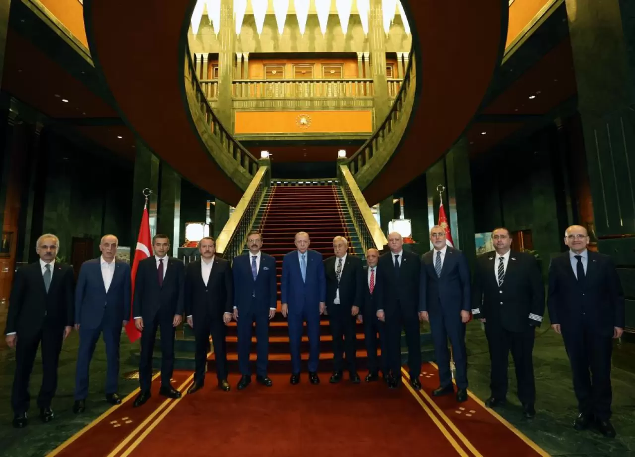 Cumhurbaşkanı Erdoğan, 1 Mayıs Emek ve Dayanışma Günü dolayısıyla Cumhurbaşkanlığı Külliyesi’nde düzenlenen programda işçi, memur ve işveren temsilcilerini kabul etti.