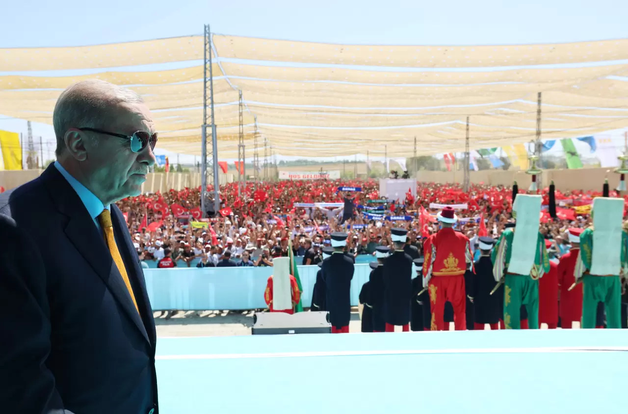 Hakkari'den Edirne'ye Muğla'dan Kars'a 81 ilimizdeki 86 milyon vatandaşımızın tamamına sevgilerimi, gönderiyorum. İsrail'in barbar saldırıları altında hayat mücadelesi veren Gazzeli, Filistinli kardeşlerimizi selamlıyor, kendilerine dayanışma mesajlarını iletiyorum. Müstesna zaferin 954. yıl dönümünde Malazgirt'teyiz. Bu meydanı hınca hınç dolduran kardeşlerime ayrı ayrı teşekkür ediyorum. Gençler dünyaya "biz buradayız, kıyamete kadar da burada olacağız" mesajını verdiğimiz Malazgirt Zaferi'nin 954. yıl dönümü mübarek olsun. Büyük komutan Sultan Alparslan ve şehitlerimizi rahmetle anıyorum. Ahlat ve Malazgirt önlerindeki ilk akından ve fethin ilk günlerinden bugüne vatan, bayrak, millet ve ümmet için canlarını feda edenlere rahmet niyaz ediyorum. O güçlü ruh bugün Malazgirt meydanındadır. Omuz omuza destan yazan kahramanların ruhları buradadır. Anadolu'nun gönül harcını yoğuran kurucu irade bugün buradadır.