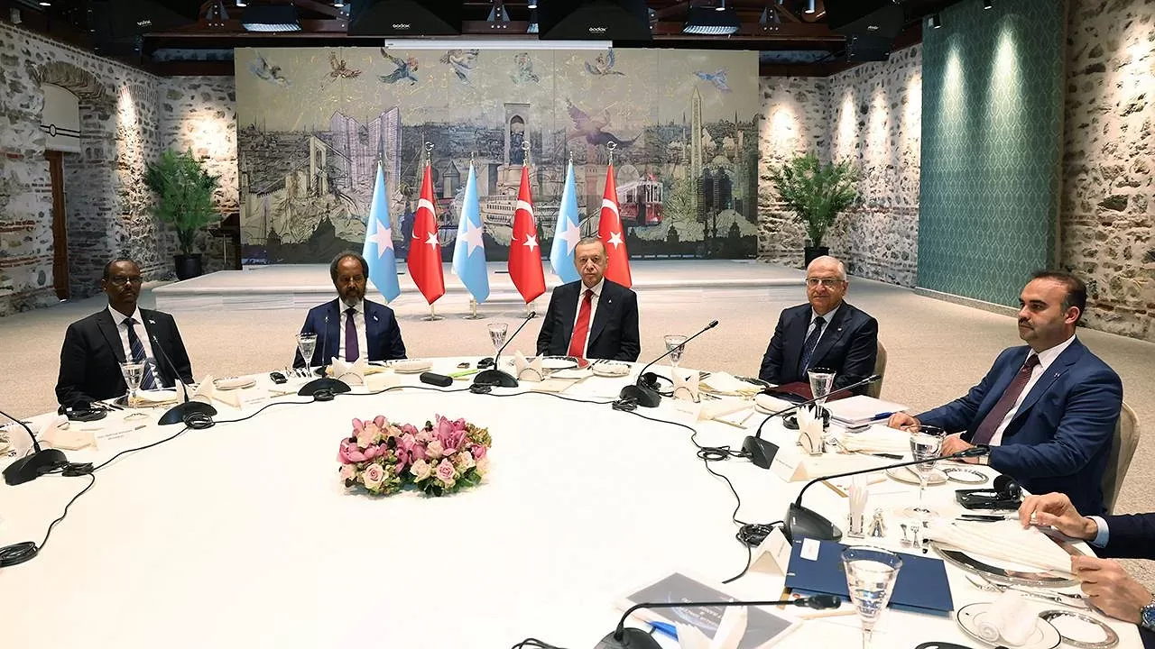 Cumhurbaşkanı Erdoğan'ın yoğun mesaisi devam ediyor. Erdoğan, İstanbul'da Somali Cumhurbaşkanı Hasan Şeyh Mahmud ile bir araya geldi.