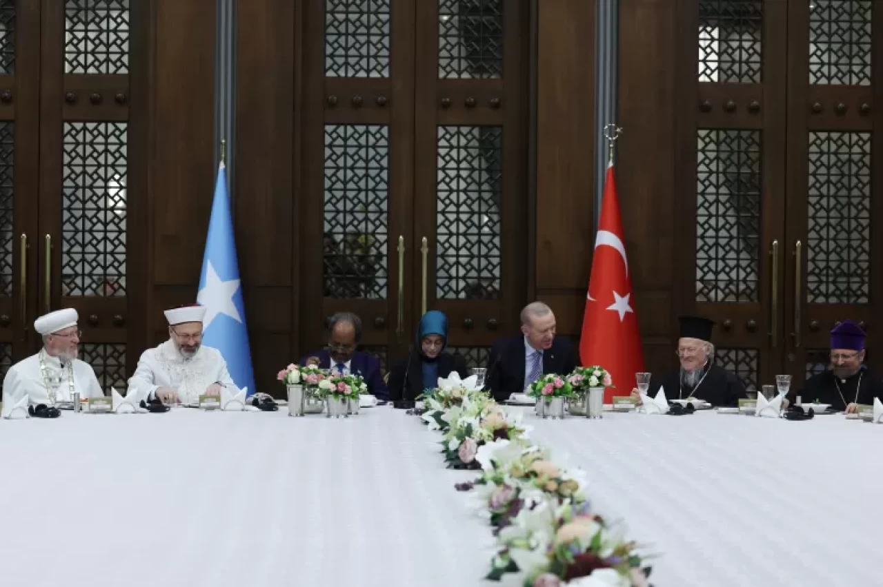 Somali Cumhurbaşkanı Mahmud'u Türkiye'de misafir etmenin bahtiyarlığını yaşadığını belirten Cumhurbaşkanı Erdoğan, "Aynı şekilde böyle mübarek bir günde iftar soframızı ülkemizdeki cemaat vakıflarının temsilcileriyle paylaşmaktan büyük bir memnuniyet duyuyorum. Davetimize icabet ederek iftar soframızı şereflendirdiğiniz için her birinize ayrı ayrı teşekkür ediyorum. Sizlerin vasıtasıyla temsil ettiğiniz cemaatlerin bütün mensuplarına selam ve sevgilerimi gönderiyorum" dedi.