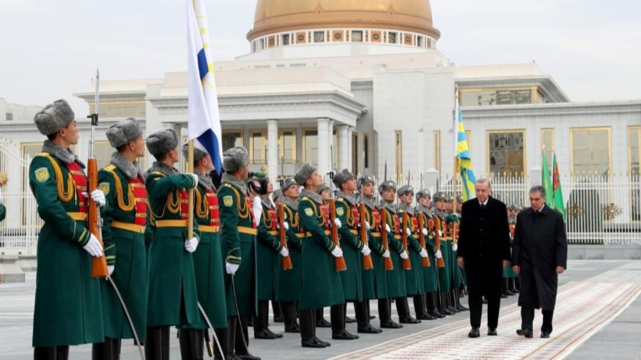 Oğuzhan Köşkü'ndeki törende, Cumhurbaşkanı Erdoğan ile Türkmenistan Devlet Başkanı Berdimuhamedov'un tören alanındaki yerlerini almalarının ardından iki ülke milli marşları dinlendi.