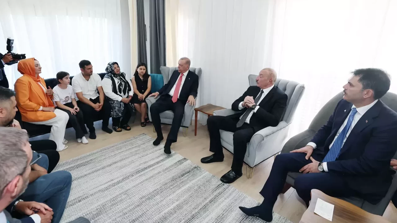 Cumhurbaşkanı Erdoğan ve Azerbaycan lideri Aliyev, Kahramanmaraş’ta düzenlenen anahtar teslim töreninin ardından depremzede bir haneye konuk olarak, dayanışma ve kardeşlik mesajı verdi.