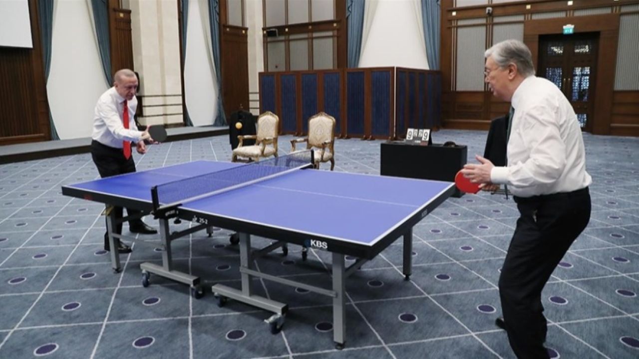 Cumhurbaşkanı Recep Tayyip Erdoğan ve Kazakistan Cumhurbaşkanı Kasım Cömert Tokayev masa tenisi oynadı.