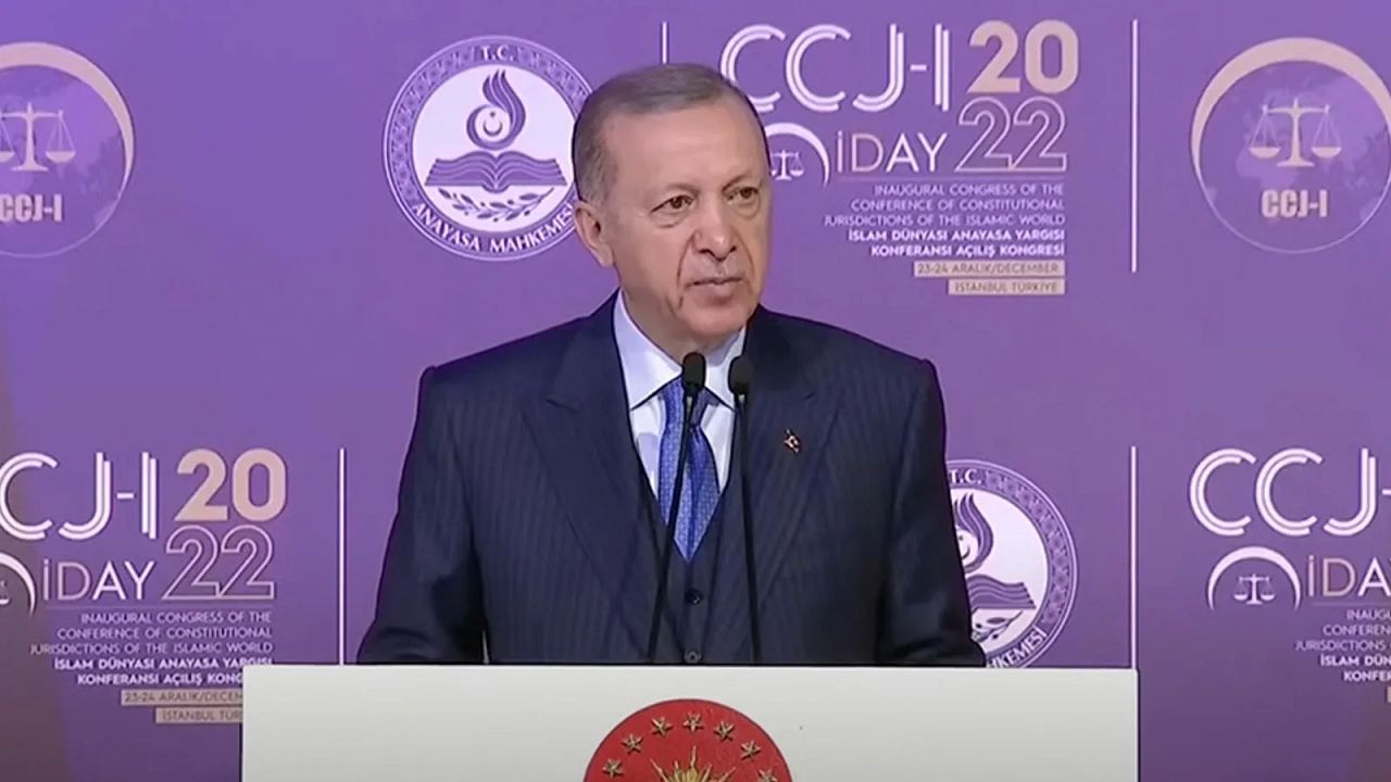 Cumhurbaşkanı Recep Tayyip Erdoğan, İslam Dünyası Anayasa Yargısı Konferansı Açılış Kongresi'ne konuşuyor.