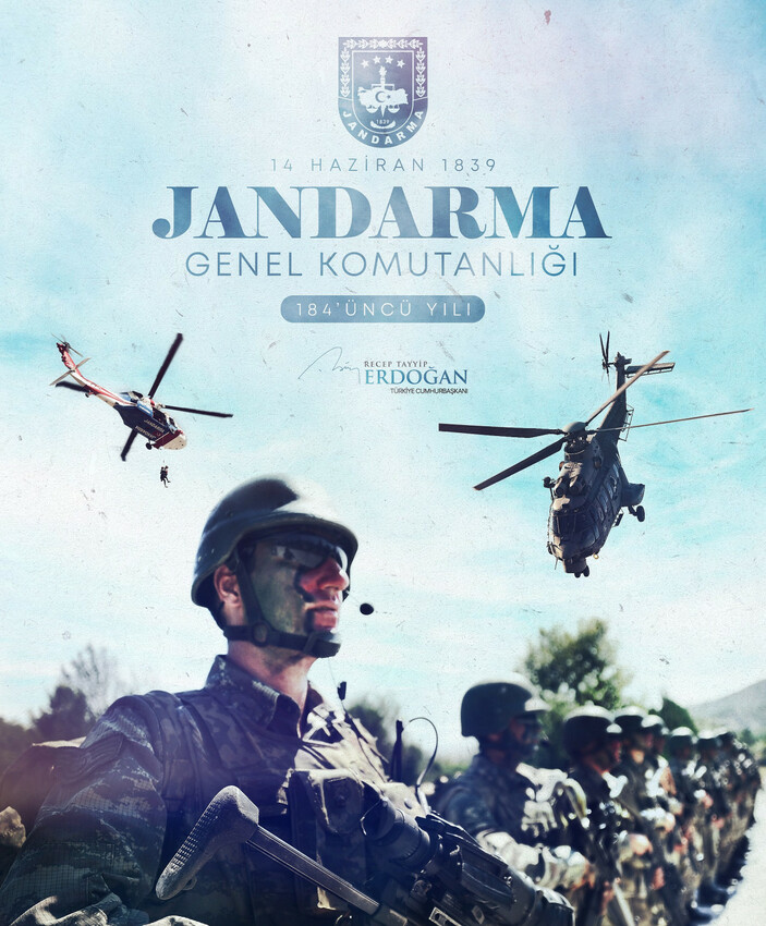 Cumhurbaşkanı Erdoğan, Jandarma Genel Komutanlığının 184'üncü kuruluş yıl dönümünü nedeniyle sosyal medya hesabından bir mesaj yayınladı.
