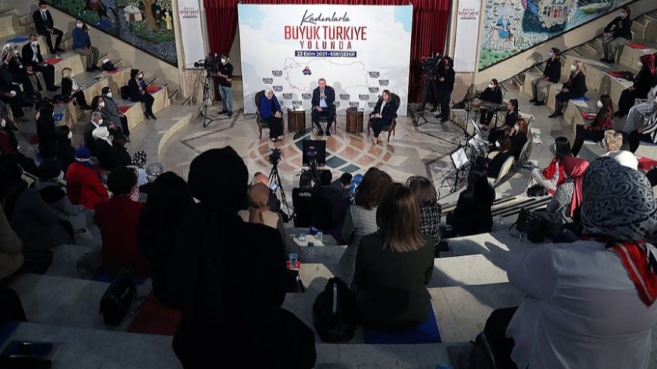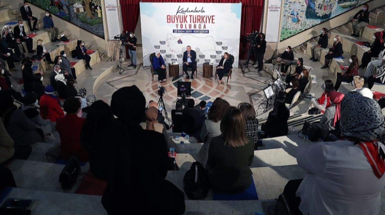 Sazova Parkı'ndaki Anadolu Üniversitesi Türk Dünyası Bilim Kültür ve Sanat Merkezi'ndeki programda konuşan Cumhurbaşkanı Erdoğan, Eskişehir ziyaretinin son programında, kadınlarla birlikte olmaktan duyduğu memnuniyeti dile getirdi.