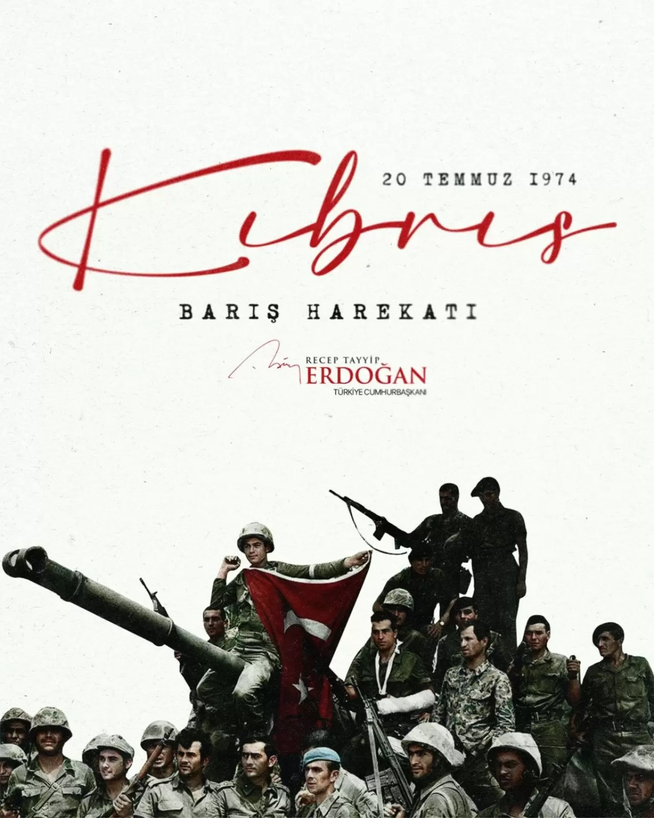 Cumhurbaşkanı Recep Tayyip Erdoğan, Kıbrıs Barış Harekâtı’nın 51’inci yıl dönümü vesilesiyle yayımladığı mesajda, Kıbrıs Türk halkının 20 Temmuz Barış ve Özgürlük Bayramı’nı yürekten tebrik etti.