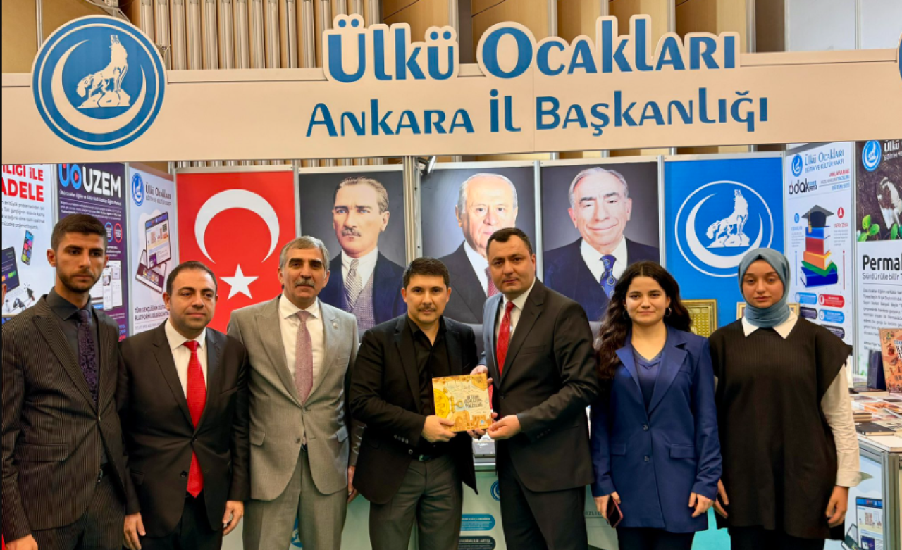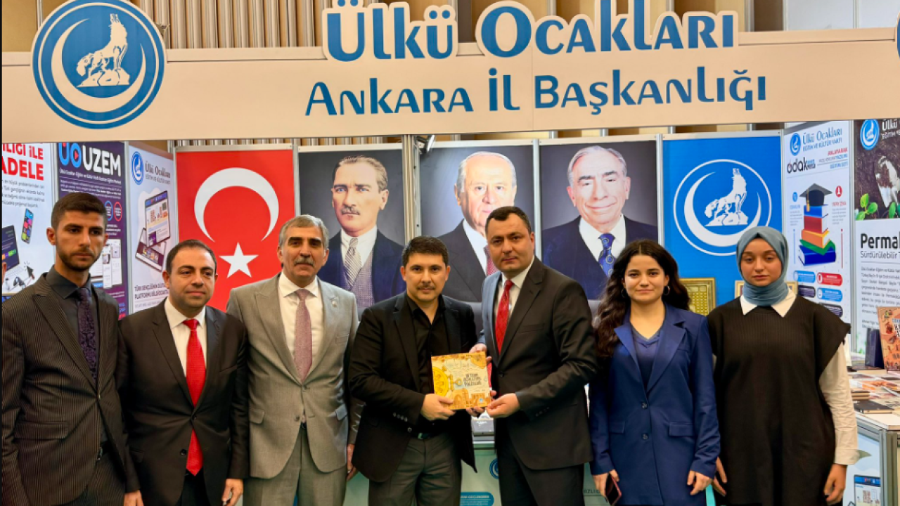 Cumhurbaşkanı Recep Tayyip Erdoğan‘ın Özel Kalem Müdürü Büyükelçi Doç. Dr. Hasan Doğan, ATO CONGRESIUM'da gerçekleştirilen 19. Ankara Kitap Fuarında bulunan Ankara Ülkü Ocakları standını ziyaret etti. Doğan'ı, Milliyetçi Hareket Partisi Genel Başkanı Devlet Bahçeli'nin Başdanışmanı Eyyup Yıldız ve Ülkü Ocakları Ankara İl Başkanı Ömer Şanlı karşıladı.