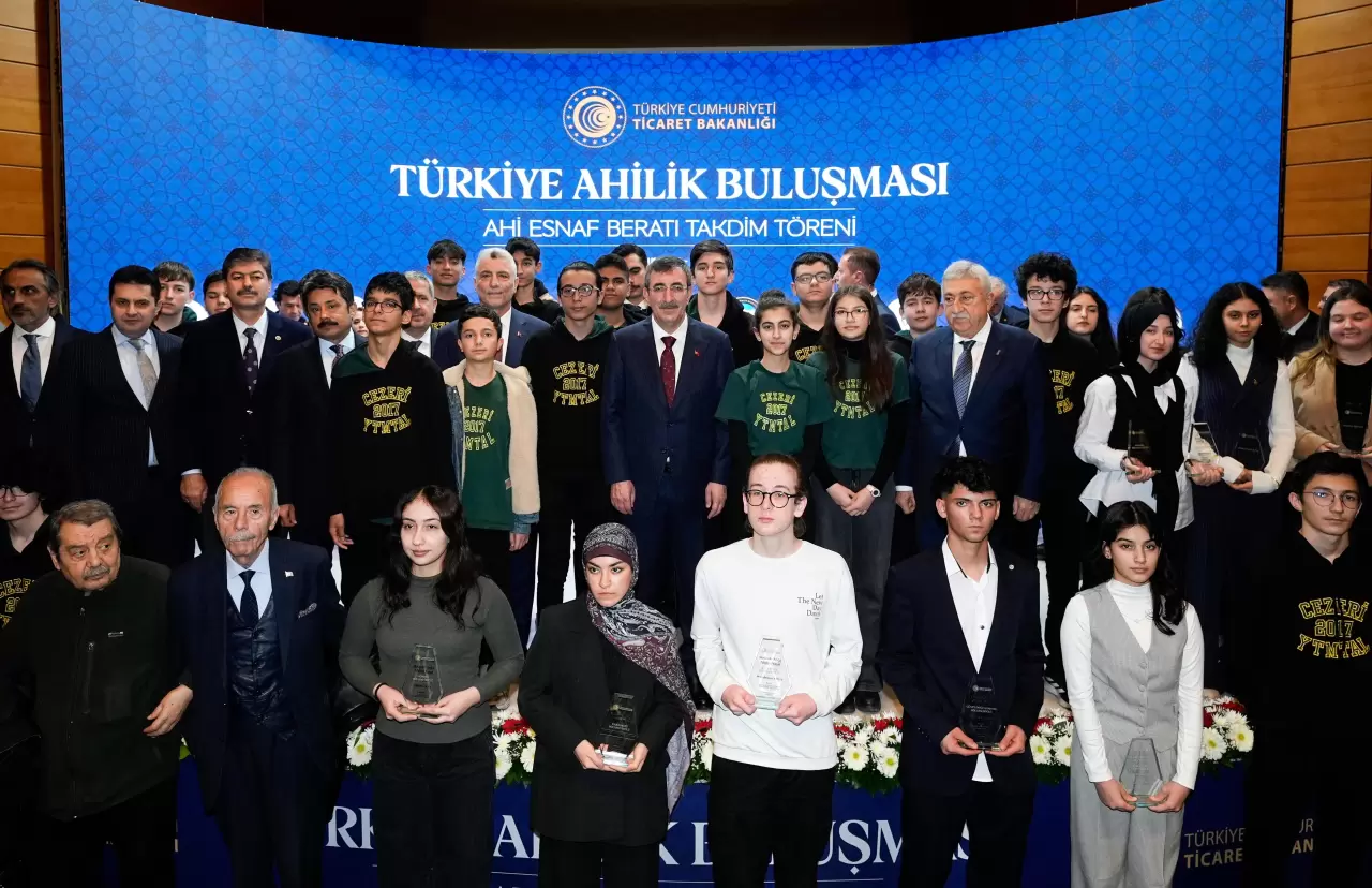 Cumhurbaşkanı Yardımcısı Cevdet Yılmaz, Ticaret Bakanı Ömer Bolat ile Ticaret Bakanlığı'nda düzenlenen "Türkiye Ahilik Buluşması ve Ahi Esnaf Beratı Takdim Töreni"ne katıldı.