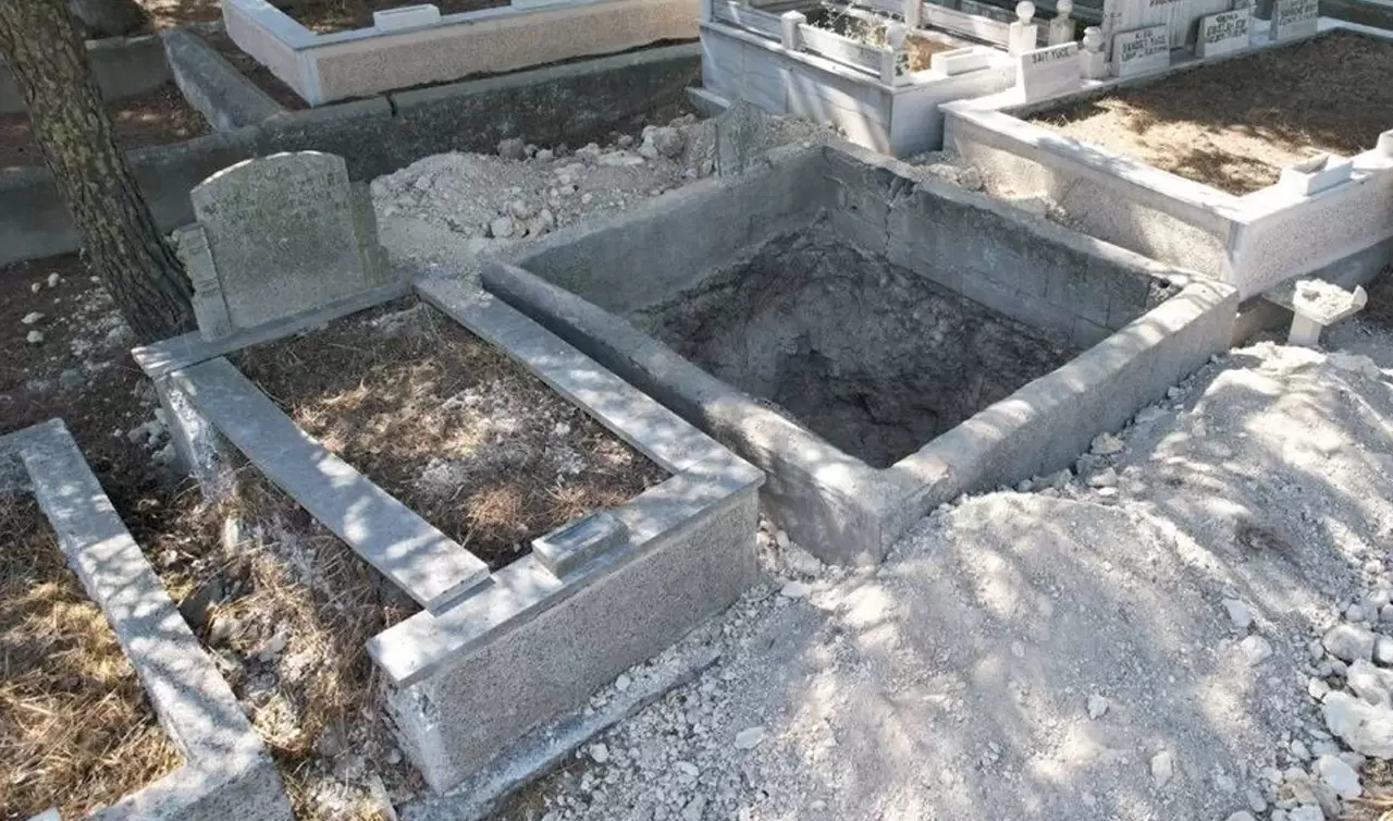 Mezarlığa dua etmek için gelenler açılmış mezarı görünce şoke uğradı.