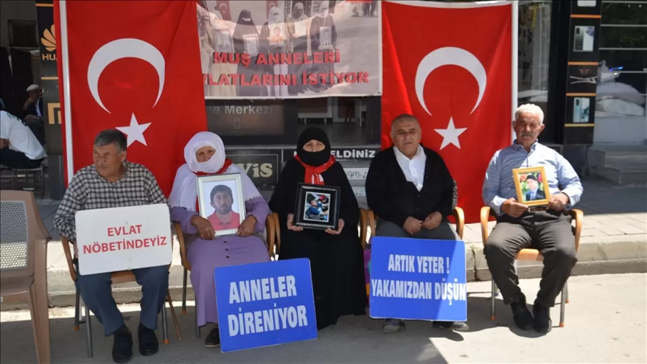 Muş'ta çocukları terör örgütü PKK tarafından kaçırılan aileler, DEM Parti İl Başkanlığı binası önündeki eylemlerine devam etti.