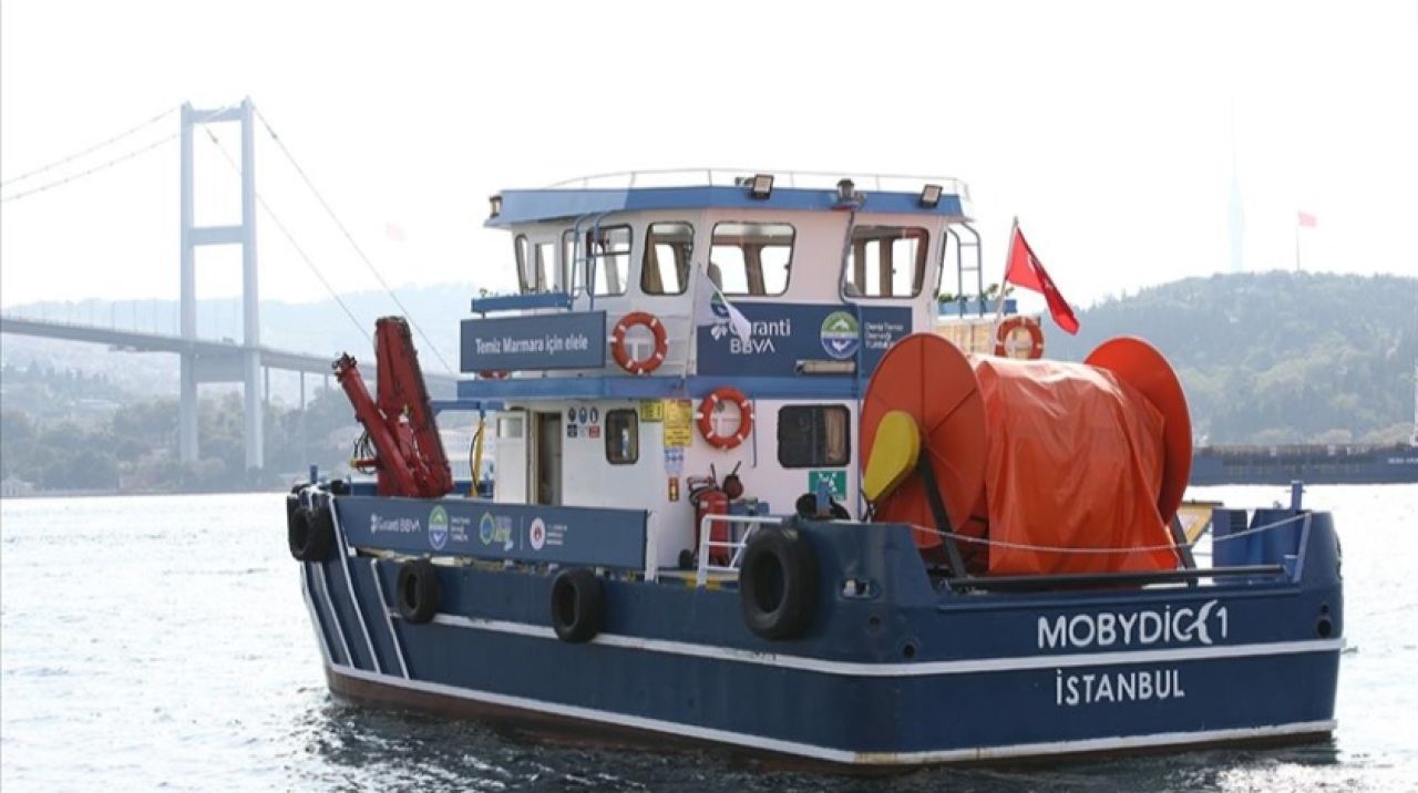 Konuşmaların ardından deniz süpürgesi İstanbul Boğazı'nda katı atıkları toplamak için yola çıktı.AA