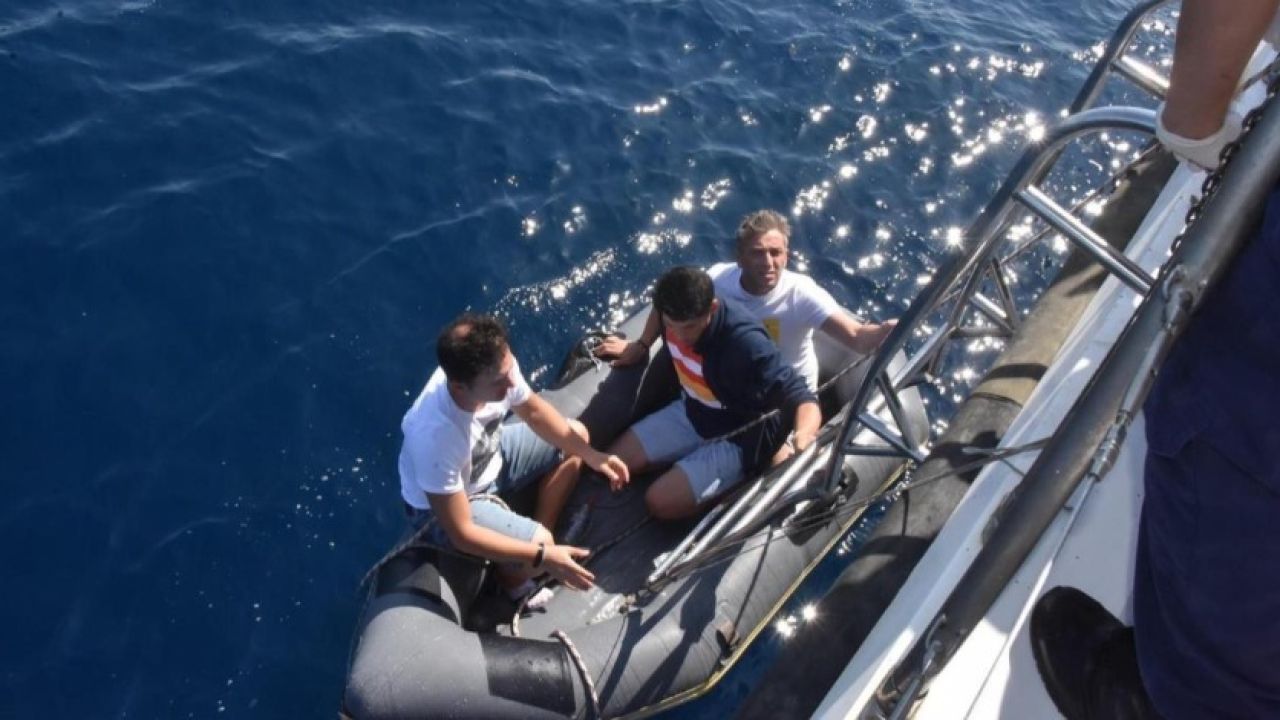 Kuşadası açıklarında 28 Eylül günü devriye görevi yapan Sahil Güvenlik ekibi, içinde 3 kişi bulunan lastik botu fark etti. Sahil Güvenlik ekibi, bottaki O.Y. (34), F.K. (31) ve E.G.'yi (32) kendi botlarına aldı. Yasa dışı yollardan Yunanistan'ın Sisam Adası'na geçmeye çalıştıkları belirlenen şüphelilerden O.Y. ve F.K. kendilerini yazılımcı, E.G. ise mobilyacı olarak tanıttı. 3 şüpheli, Kuşadası'nın Güzelçamlı Mahallesi'nden sabah saatlerinde dalış yapmak için denize açıldıklarını öne sürdü. O anlar DHA ekibi tarafından anbean görüntülendi. Şüphelilerden E.G. röportaj yapmak istemezken, bir diğer şüpheli F.K. ise, "Dalış yapıyorduk. Aramızda iddialaştık. Tecrübemiz yok. Ufak ufak botla buraya kadar geldik" dedi.