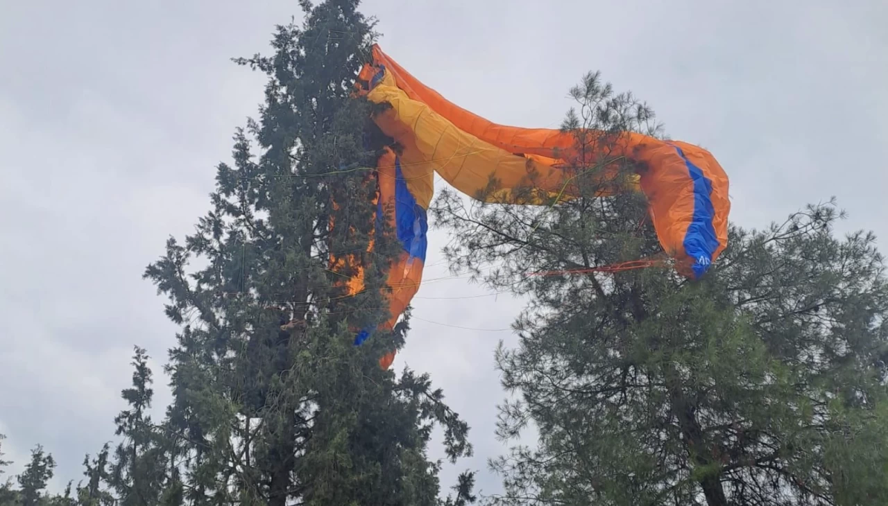 Denizli'nin Pamukkale ilçesinde uçuş sırasında kontrolü kaybederek ağaç dallarına takılan yamaç paraşütü pilotu, itfaiye ekiplerince kurtarıldı.