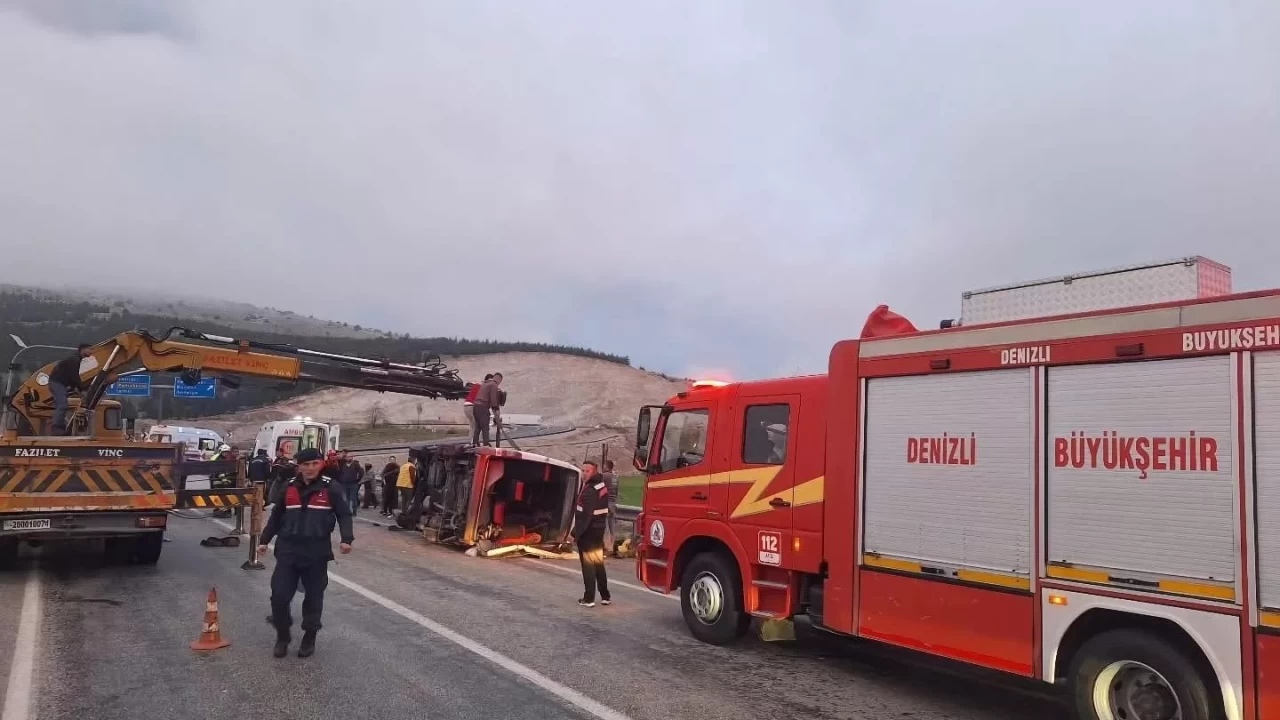 Denizli’nin Tavas ilçesinde tekstil işçilerini taşıyan minibüs, kontrolden çıkması sonucu refüjü aşarak karşı şeritteki seyir halinde olan otomobil ile çarpıştı. Çarpışma sonucu minibüs devrilirken, 1’i ağır 13 kişi yaralandı.