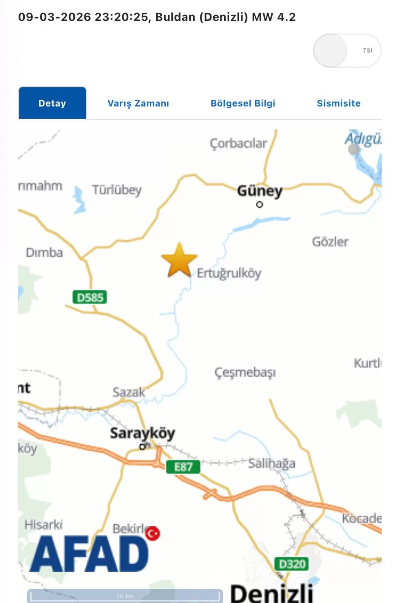 Saat 23.20’de meydana gelen son artçı deprem Buldan merkezli oldu ve 4.2 büyüklüğünde ölçüldü. Depremin derinliği yaklaşık 12,16 kilometre olarak belirlendi.