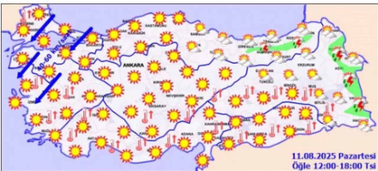 Ancak rüzgar sert esecek. Rüzgarın kuzey ve kuzeydoğu yönlerden kuvvetli (40-60 km/saat) esmesi bekleniyor.