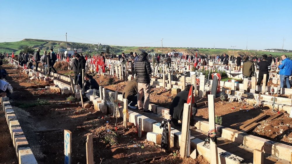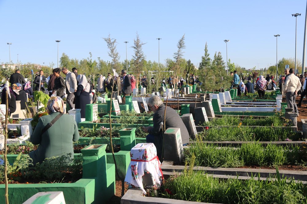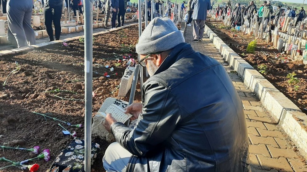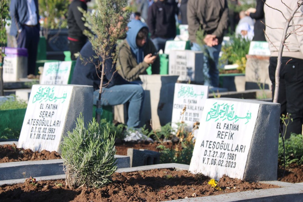 Büyük depremlerden etkilenen 11 ilde vatandaşlar, bayram namazından sonra mezarlıklara geçerek kimisi yakınının, kimisi arkadaşının mezarı başında Fatiha okuyup dua etti.